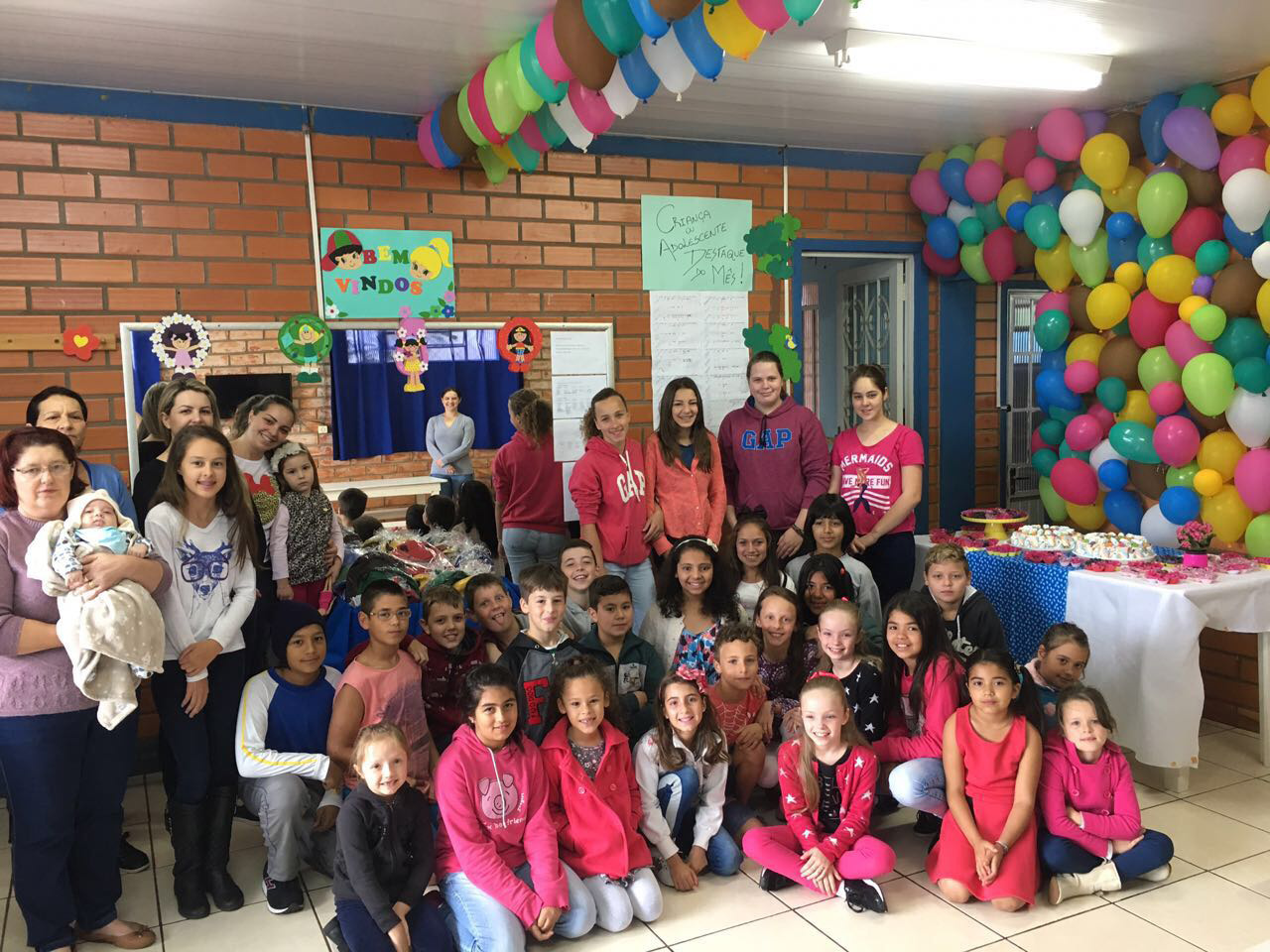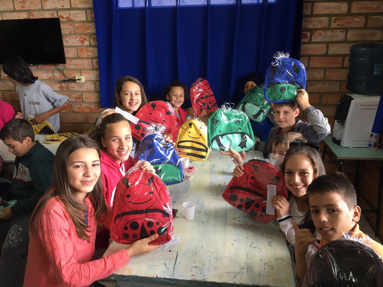 Elas participaram de uma festa realizada pelos colaboradores da agência e suas famílias, em parceira com a professora Daniela Moura Martello e os conselheiros Giovani Cella e Ivandro Bertotti. Cada criança ainda levou para casa uma mochila de presente.