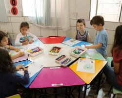 Chapecó, 25/10/2019, sexta-feira As crianças apresentam uma enorme curiosidade pelo mundo da escrita e da leitura e é através das diferentes histórias que elas exploram o mundo da fantasia e também expressam seus sentimentos, desejos e ideias. Ler e escrever aguça a curiosidade, a imaginação e a criatividade. Pensando nisso, o Centro de Educação Infantil Municipal - CEIM BB Criança do bairro Universitário está realizando o projeto com as turmas do pré-escolar e o tema é Pequenos, Grandes Autores.