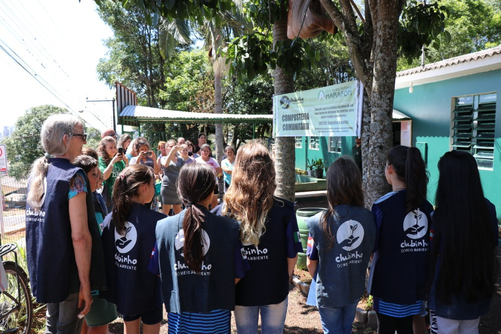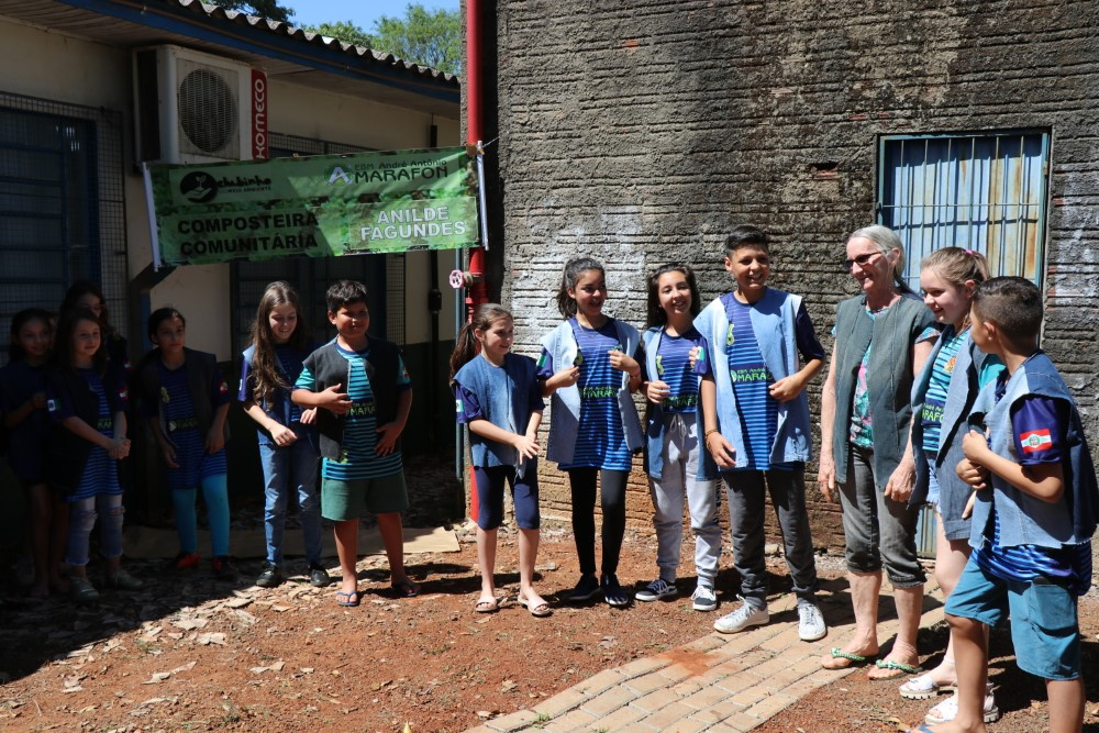 Chapecó, 28/1002019, segunda-feira Na semana passada a Escola Básica Municipal André Antônio Marafon inaugurou uma Composteira Comunitária nas dependências da escola. Essa iniciativa foi proposta pelo Clubinho do Meio Ambiente, formado por alunos da escola, que tem como objetivo levar à comunidade a forma correta de descartar os resíduos orgânicos. Essa ação integrou a programação da Semana Lixo Zero, realizada de 20 a 27 de outubro. Integrantes do Instituto Lixo Zero Brasil, Instituição Chapecó Criança - Cidadania em Ação, Programa Lixo Zero e muitas famílias, estiveram presentes neste momento especial.