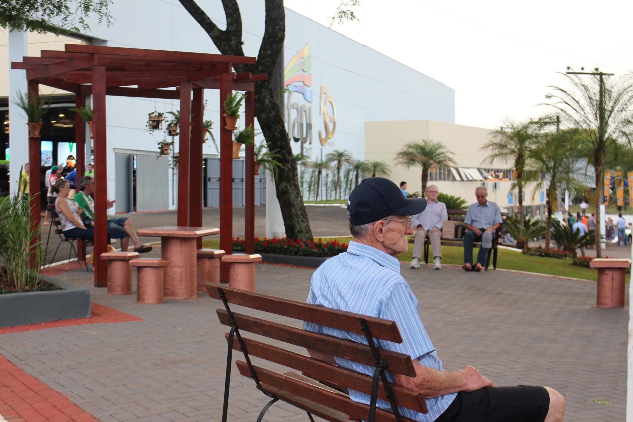 Lugares para descanso, lazer e conforto. Esses são uns dos diferenciais da 20ª Exposição-Feira Agropecuária, Industrial e Comercial de Chapecó (EFAPI 2017) que, neste ano, está com pelo menos 40 espaços de convivência em pontos distribuídos no Parque de Exposições Tancredo Neves. Os espaços são convidativos para reunir a família e os amigos em momentos de descontração e entretenimento. A adição dessas novas opções são aprovadas pelos visitantes. Conforme a visitante Veridiane Guerra, que esteve na Feira junto à sua família, os novos espaços facilitam a visitação. Eu achei interessante pois agora temos a possibilidade de sentar, descansar, conversar e depois continuar o passeio, comenta.