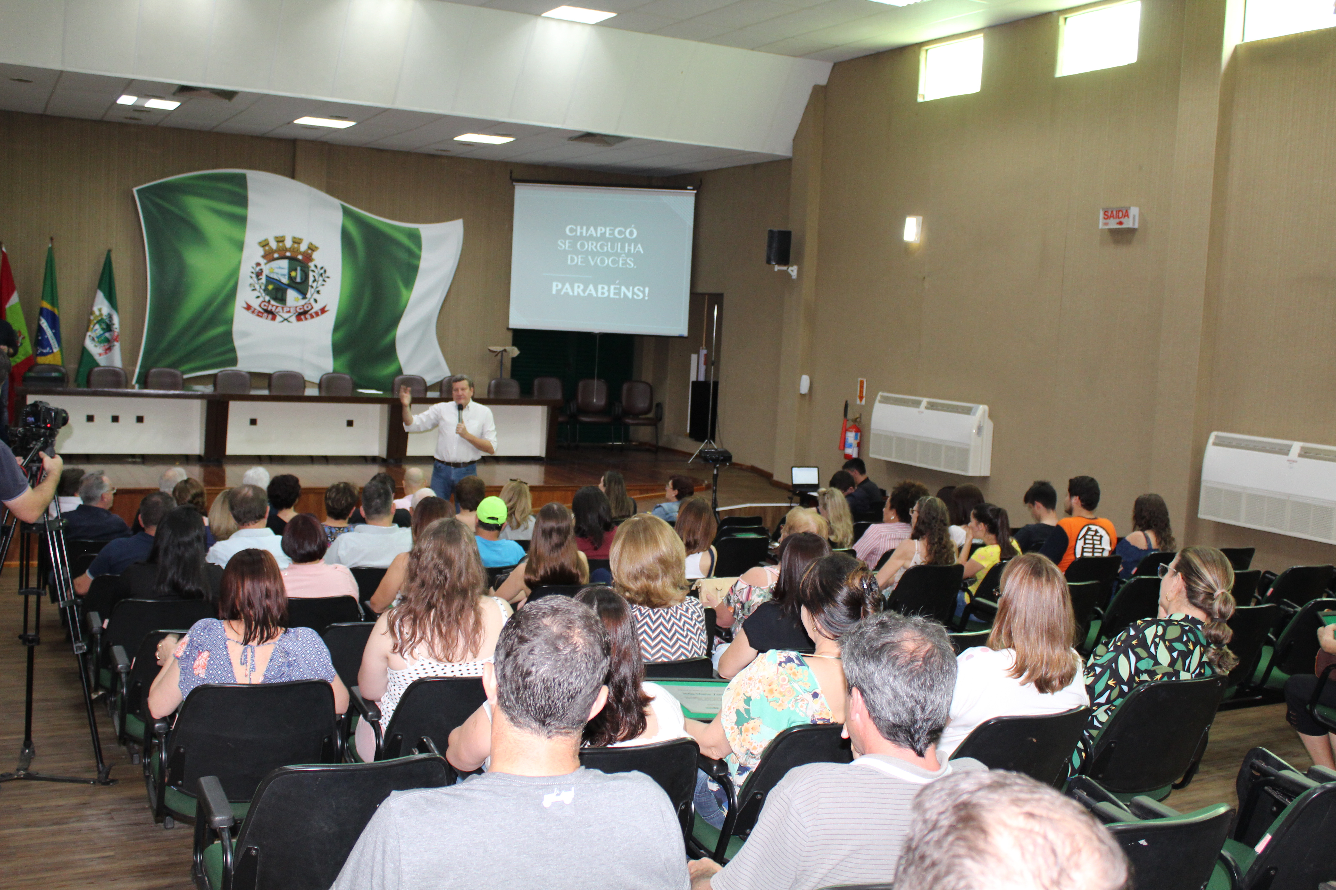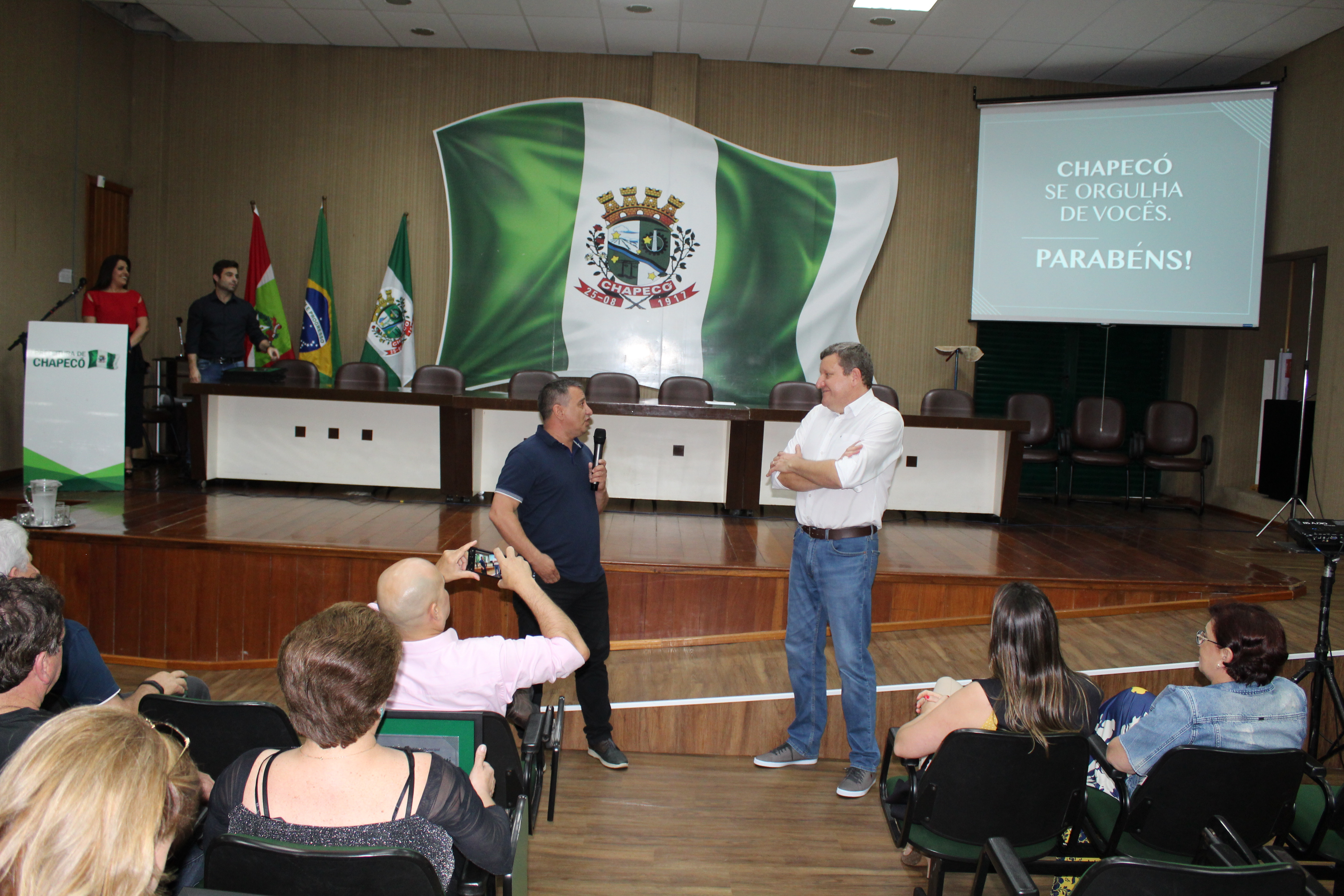 Acompanhados por familiares e pelos Secretários responsáveis pelas pastas, os 30 homenageados recebem um quadro, que simbolicamente representa uma trajetória de zelo e determinação as atribuições dos cargos e funções ocupados ao longo das últimas três décadas. Com 102 anos de história, Chapecó se fez grande com a contribuição e dedicação dos abnegados servidores que recebem hoje esta singela homenagem. Eles foram leais às atribuições, às normas legais e regulamentares do serviço público municipal. Atenderam com presteza ao cidadão chapecoense e sempre mantiveram conduta compatível com a moralidade administrativa. Merecem nosso reconhecimento, destacou o Prefeito Luciano Buligon.