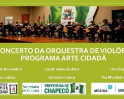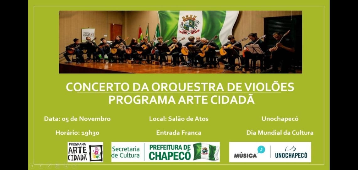 - Dia 05 de Novembro, 19h30, Salão de Atos da Unochapecó: Concerto da Orquestra de Violões do Programa Arte Cidadã.