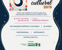Chapecó, 04/11/2019, segunda-feira Com o objetivo de valorizar as manifestações culturais e produção artística local, acontecerá das 16 horas do dia 15 de novembro (sexta-feira) às 17 horas do dia 16 de novembro (sábado) a Virada Cultural de Chapecó. Serão 25 horas de um movimento que integra múltiplas linguagens artísticas em um único evento. Ela acontecerá no Mercado Público Regional de Chapecó, terá 39 atrações artístico-culturais, artesanato e gastronomia, com entrada gratuita.