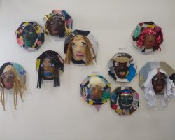 O laboratório 3 produziu um trabalho aliando o mundo das texturas à uma técnica de pintura em camadas de cores. Já, o laboratório 4, desenvolveu primeiramente vários estudos de cabeças, seus elementos e medidas, utilizando diversos materiais de desenho para após a compreensão, construir uma cabeça tridimensional com balão, jornal, cola e sucatas diversas.
