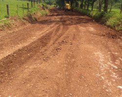 - Continuação dos trabalhos de patrolamento e cascalhamento no Bairro Quedas do Palmital e acesso ao Aeroporto;
