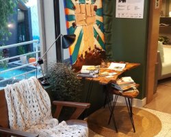Chapecó, 13/11/2019, quarta-feira A Biblioteca Pública Municipal Neiva Maria Andreatta Costella de Chapecó foi o local escolhido pelas profissionais Carini Boneti e Joana para buscar elementos e informações para construir o espaço delas na Decorare 2019. A mostra acontece em Chapecó de 10 de outubro a 17 de novembro, e apresenta trabalhos de arquitetura, decoração e engenharia, e além disso, destaca as tendências do segmento e o potencial dos profissionais dessa área, além de ser uma grande vitrine de novos talentos.