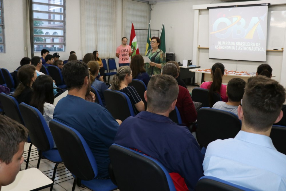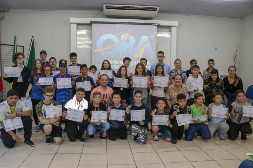 Chapecó, 18/11/2019, segunda-feira Estudantes, Pais, Professores e Gestores, todos reunidos em uma tarde de muita emoção. Aconteceu na quinta-feira (14/11) no auditório da Secretaria de Educação, a entrega de medalhas da 22ª Olimpíada Brasileira de Astronomia e Astronáutica - OBA e 13ª Mostra Brasileira de Foguetes MOBFOG.
