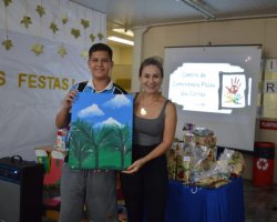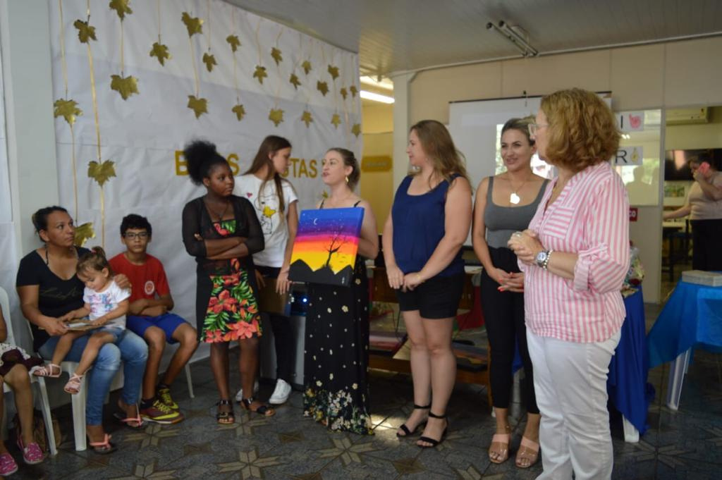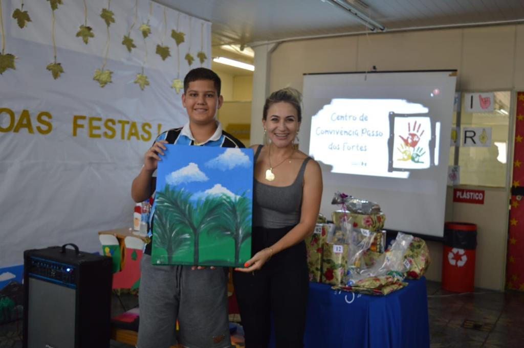 A programação teve entrega das pinturas em tela, produzidas pelo grupo Serviço de Convivência e Fortalecimento de Vínculos, na Oficina de Artes,compropósito da reutilização de telas de serigrafia. A temática foi livre, cada participante escolheu uma paisagem, personagem ou até a linguagem abstrata, a partir das técnicas de pintura. Foram entregues as famílias porta retratos, confeccionados no Centro de Convivência, a partir da reutilização de filtros de café, com a fotografia de cada adolescente. Após, houve uma dinâmica com o objetivo da união e trabalho em equipe, proporcionados pelas estagiárias de psicologia da Unochapecó, e a Técnica de Referência do Cras Líder, seguido de um bingo. Para finalizar foi servido um delicioso almoço com Macarronada e Galeto, seguido de sobremesa. Foi um encontro muito bom, proporcionando união, carinho, afeto, integração e socialização. As famílias expressaram o sentimento de gratidão e satisfação, parabenizando a equipe do Centro de Convivência Passo dos Fortes pela iniciativa.