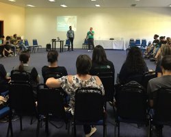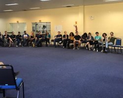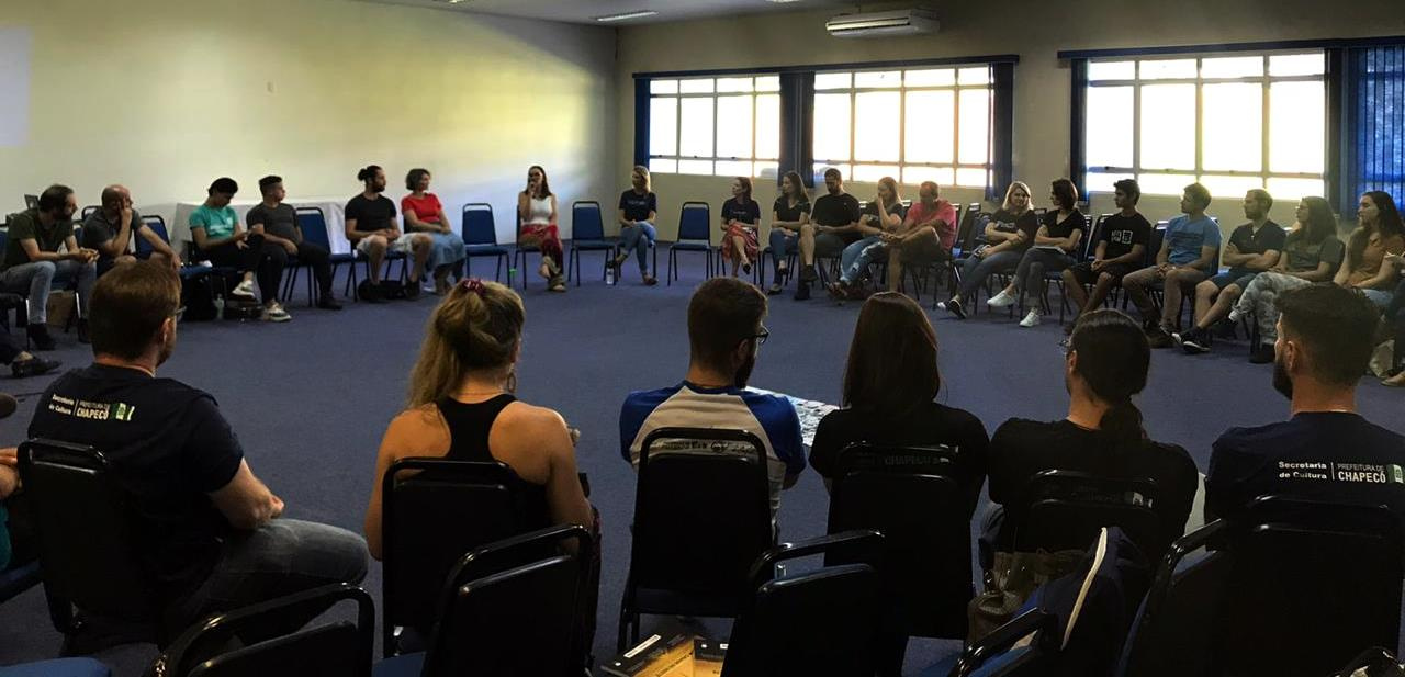 Chapecó, 11/02/2020, terça-feira Os professores que atuarão no ano de 2020 nos programas de formação da Secretaria de Cultura, Escola de Artes, Programa Arte Cidadã e professores do CEU Centro de Artes e Esportes Unificados, participam de formação durante a semana de 10 a 14 de fevereiro. A formação acontece no Centro de Cultura e Eventos Plinio Arlindo De Nes, das 13 às 19 horas e tem a participação de cerca de 60 professores que atuam nas áreas de música, dança e teatro. É um momento para discussões, reflexões e diálogos sobre o trabalho, também um tempo para organização dos espaços de atividades e aulas. A formação tem a parceria da Unoesc e da Unochapecó.