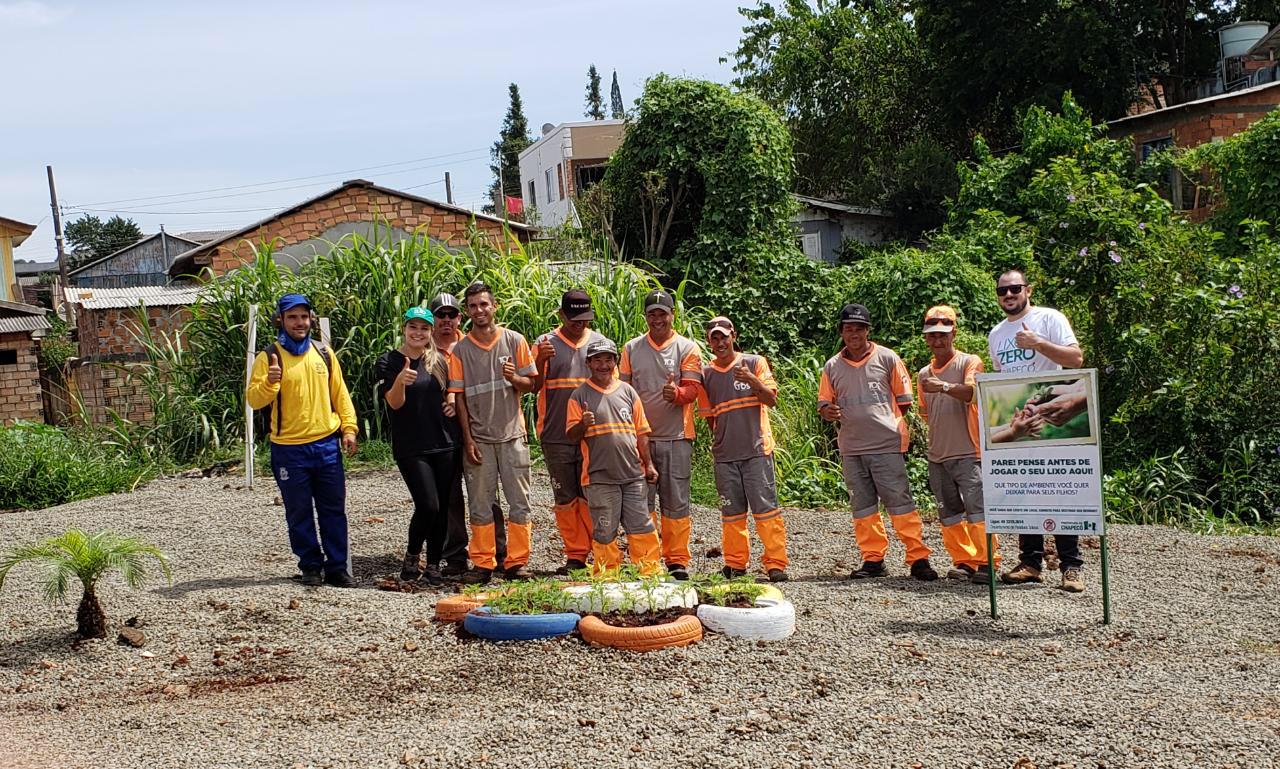 Além do recolhimento de entulhos, roçada e limpeza geral do espaço, foram colocadas placas de conscientização e plantadas árvores e flores produzidas diariamente no Horto Botânico Municipal.As fotografias mostram o cenário antes e depois da ação. Em parceria com a comunidade, temos trabalhado um conjunto de ações voltadas aos cuidados com os resíduos, medidas que incentivam uma mudança de comportamento nas pessoas para a prática correta de descartar e reaproveitar os resíduos, atitudes que refletem no dia a dia de quem trabalha diariamente com os resíduos, os nossos catadores, complementou a Gerente do Departamento de Resíduos Sólidos e coordenadora do Programa Lixo Zero Chapecó, Vanusa Maggioni Cella.