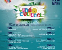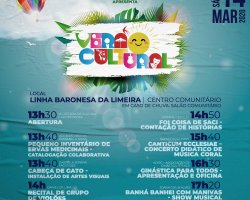 No sábado (14) a atividade acontecerá a partir das 13h30 na Linha Baronesa da Limeira. Já no domingo (15), a partir das 16 horas, a atividade acontecerá na Praça da Liberdade no bairro Presidente Médici. Durante as atividades do Verão Cultural, serão realizadas apresentações culturais gratuitas de artistas, espalhadas por praças e parques de diferentes localidades. A iniciativa visa oportunizar e democratizar o acesso à arte e à cultura, descentralizar as atividades culturais levando-as também para os bairros e interior, com o objetivo de difundir a produção cultural local, fazendo com que as pessoas conheçam o trabalho dos artistas da comunidade.