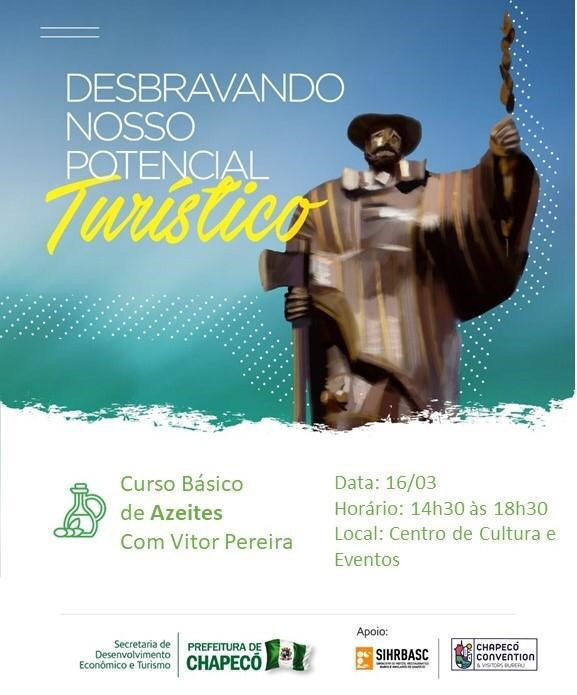 Chapecó, 12/03/2020 - quinta-feira Na próxima segunda-feira (16) o Projeto Desbravando Nosso Potencial Turístico, iniciativa do poder público por meio da Secretaria de Desenvolvimento Econômico e Turismo, dá início aos novos cursos desta 5ª edição do projeto.