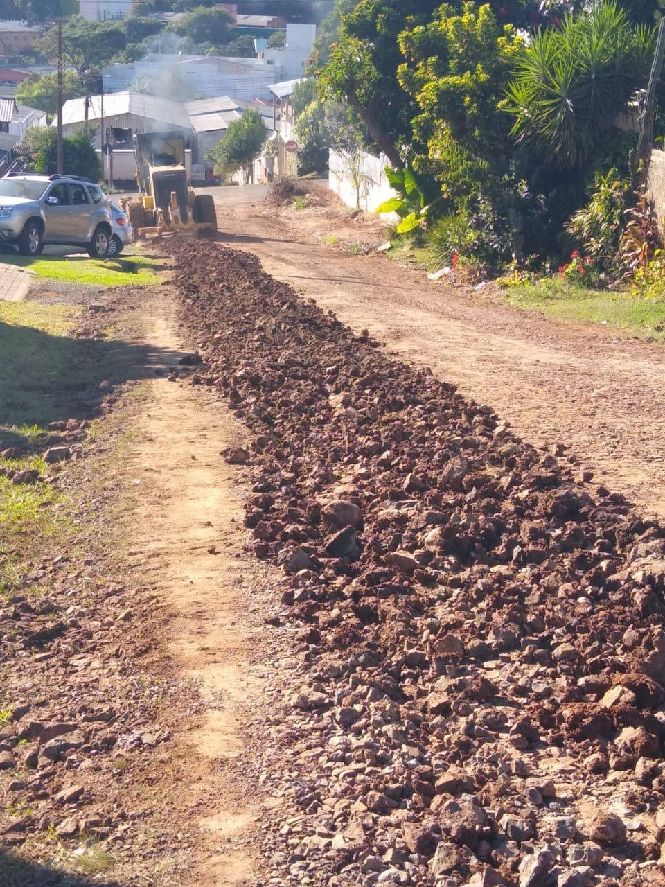 - Continuação dos trabalhos de patrolamento e cascalhamento no bairro Santo Antônio e acesso ao Aeroporto;