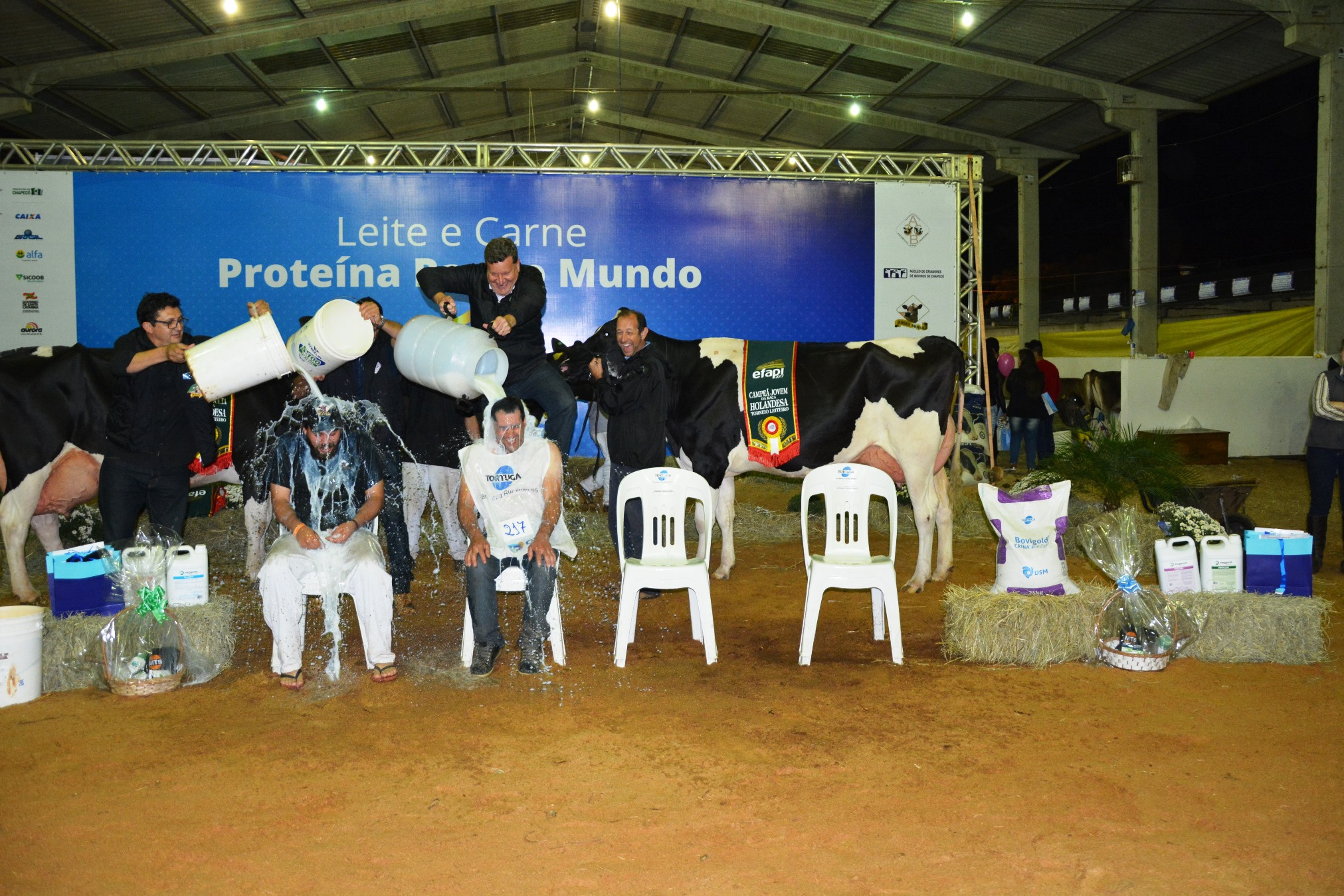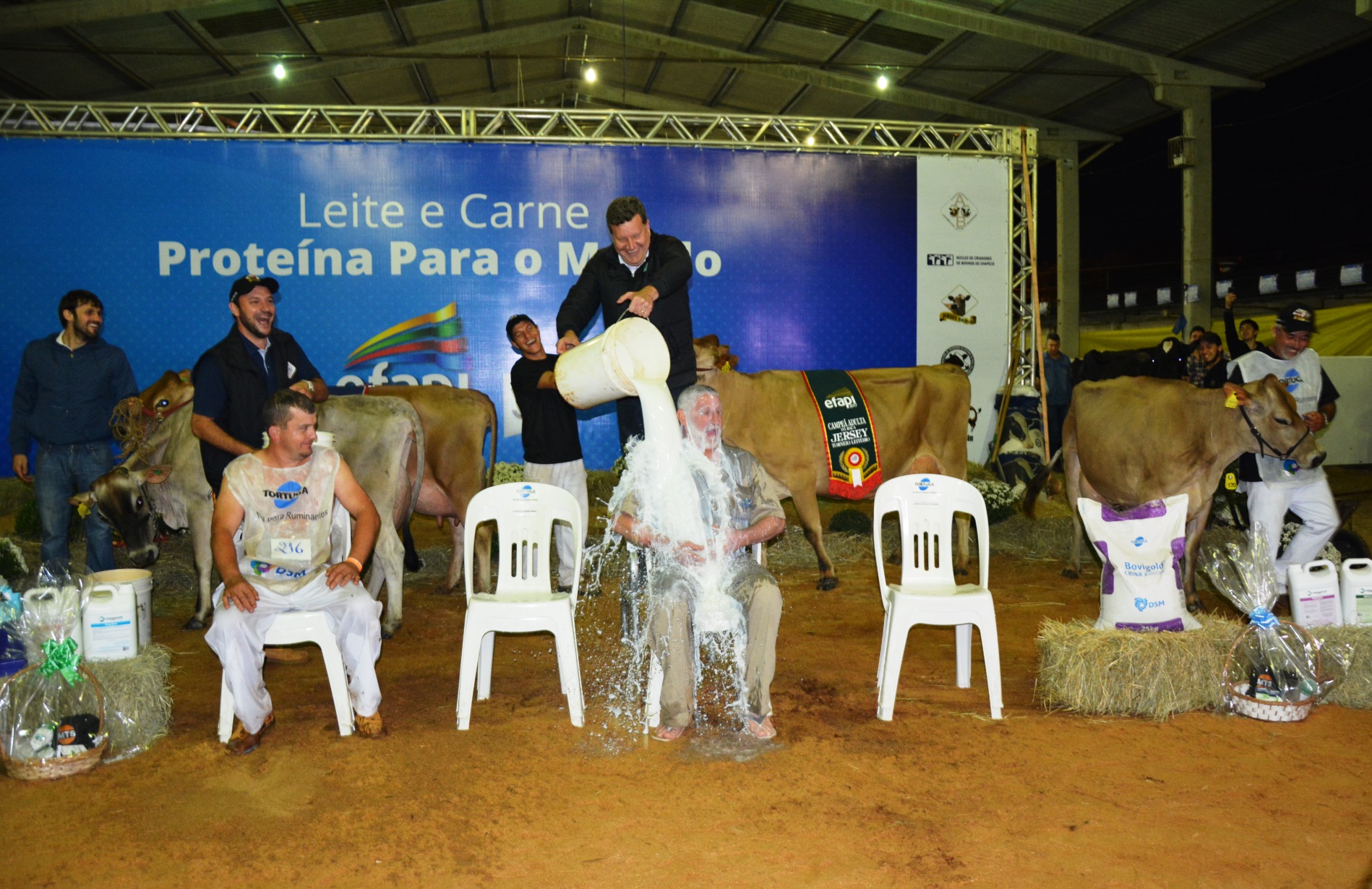 Um banho de leite ao melhor estilo das comemorações pecuárias assinalou a entrega do prêmio às vacas campeãs do TORNEIRO LEITEIRO disputado nesta semana durante a Exposição-feira Agropecuária, Industrial e Comercial de Chapecó, EFAPI 2017, que completou a 20ª edição.