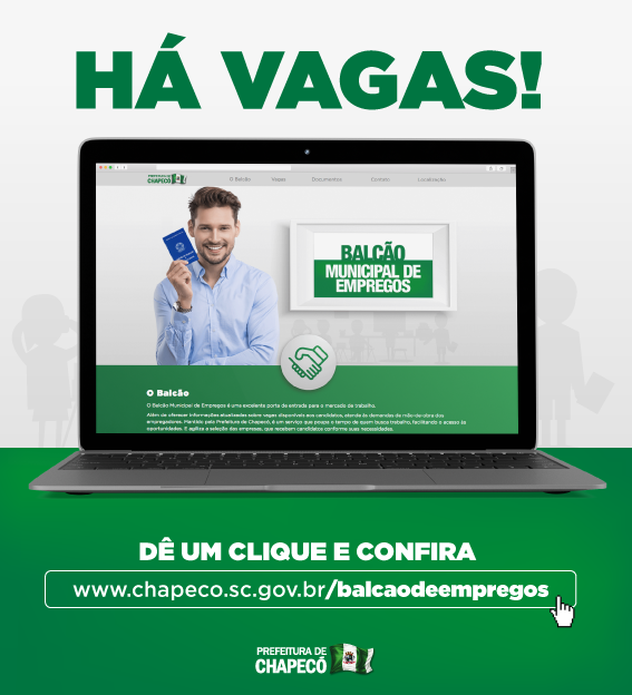 Chapecó, 12/05/2020 - terça-feira Nesta semana o Balcão Municipal de Empregos está com 139 vagas disponíveis. Os interessados podem acessar a página oficial www.chapeco.sc.gov.br/balcaodeempregos e conferir as vagas e os requisitos exigidos para cada uma delas.