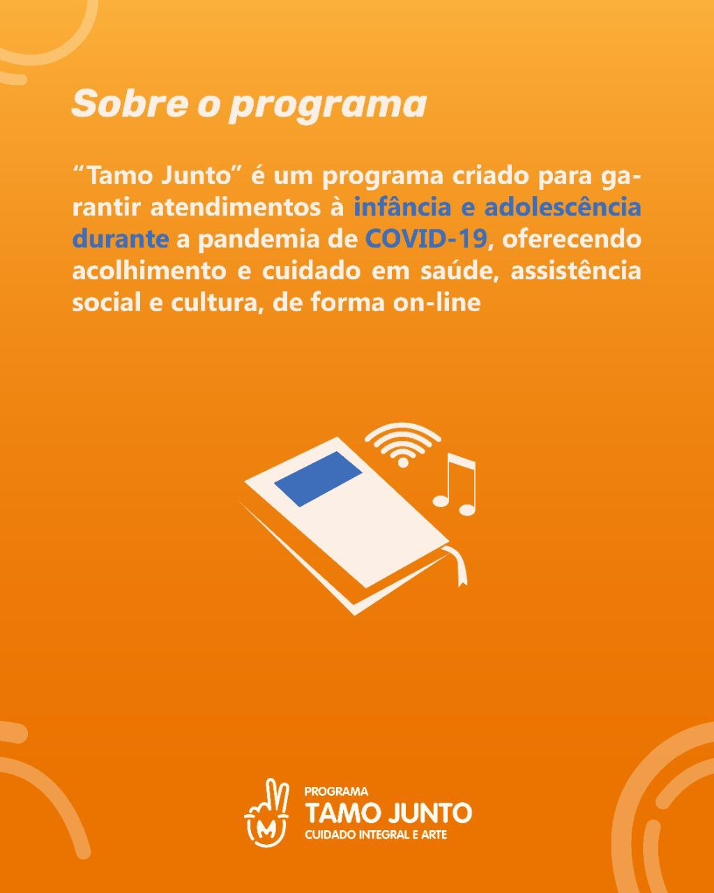 O Programa Tamo Junto realizará um trabalho intersetorial, para atender crianças e adolescentes, a partir dos CRAS, CREAS e CAPS I. A primeira região atendida será a Efapi. A ideia é que os professores do Programa Arte Cidadã, oferecido pela Administração Municipal, por meio da Secretaria de Cultura, ofereçam aulas de violão, percussão, sopros e literatura. Os professores irão preparar materiais dispondo aulas gravadas e ao vivo, com dias e horários marcados previamente. Serão também emprestados os instrumentos musicais.