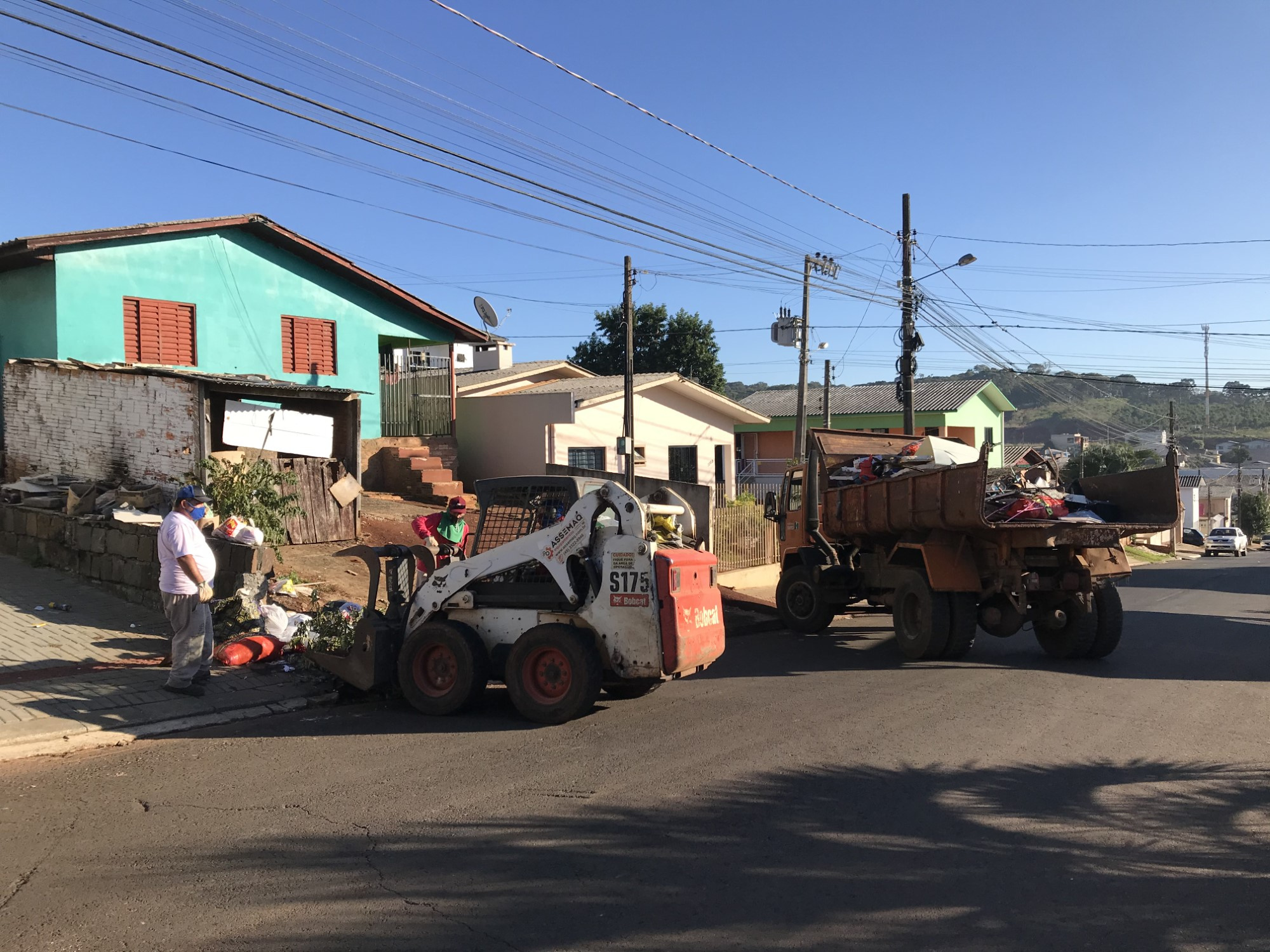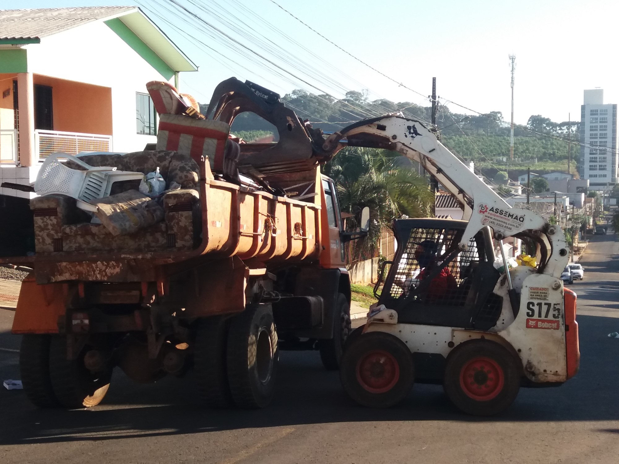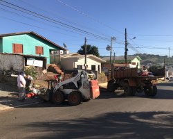 E na manhã desta segunda-feira (18-05), equipes da Superintendência da Efapi iniciaram o recolhimento dos entulhos, resultantes das visitas realizadas no sábado. O trabalho envolve homens e máquinas e se deve estende até esta terça-feira (19-05). Só hoje pela manhã recolhemos em torno de sete cargas de resíduos, que equivalem a aproximadamente 8,5 toneladas, repassou o Superintendente da Efapi, Varones Drabach.