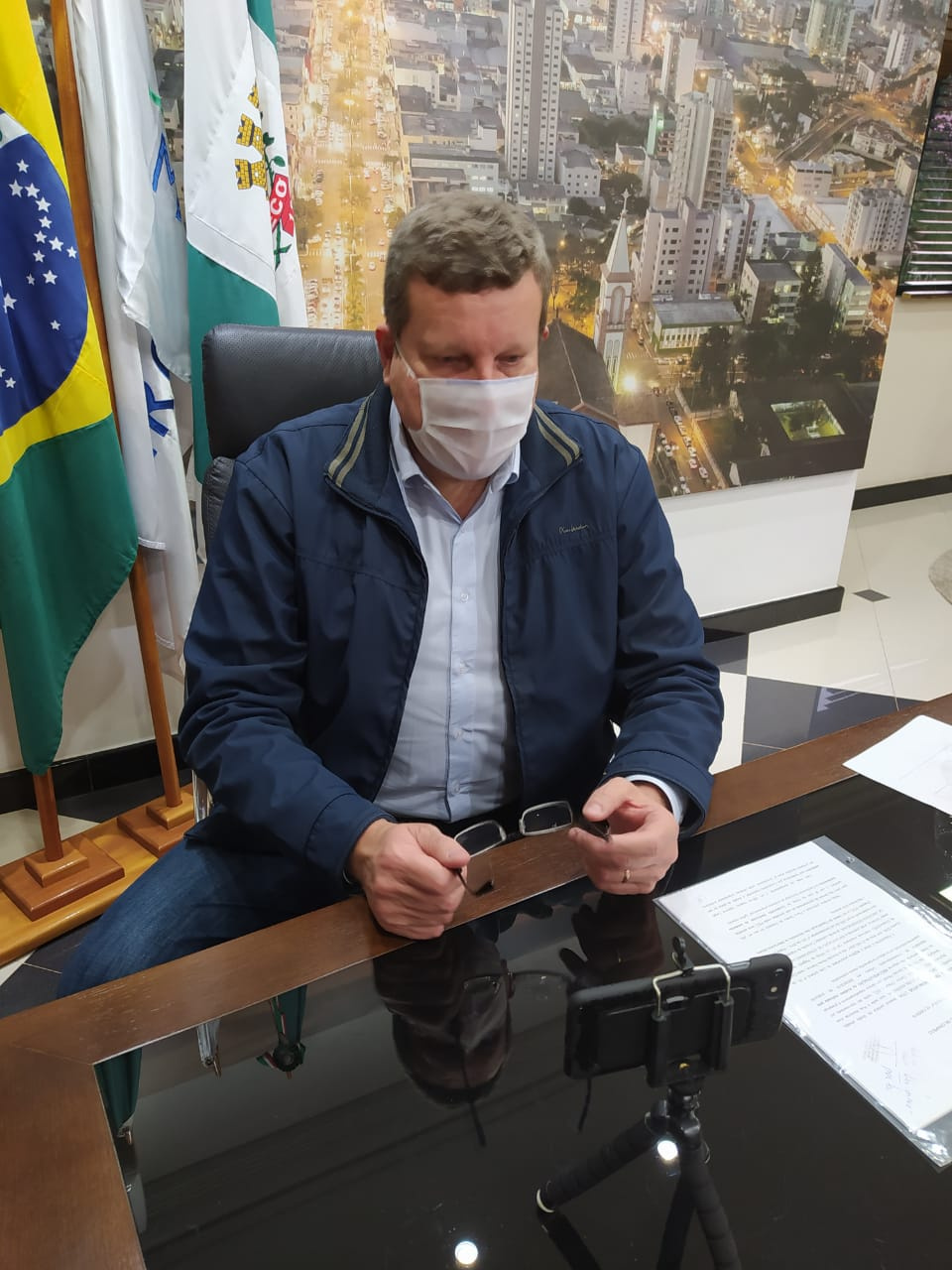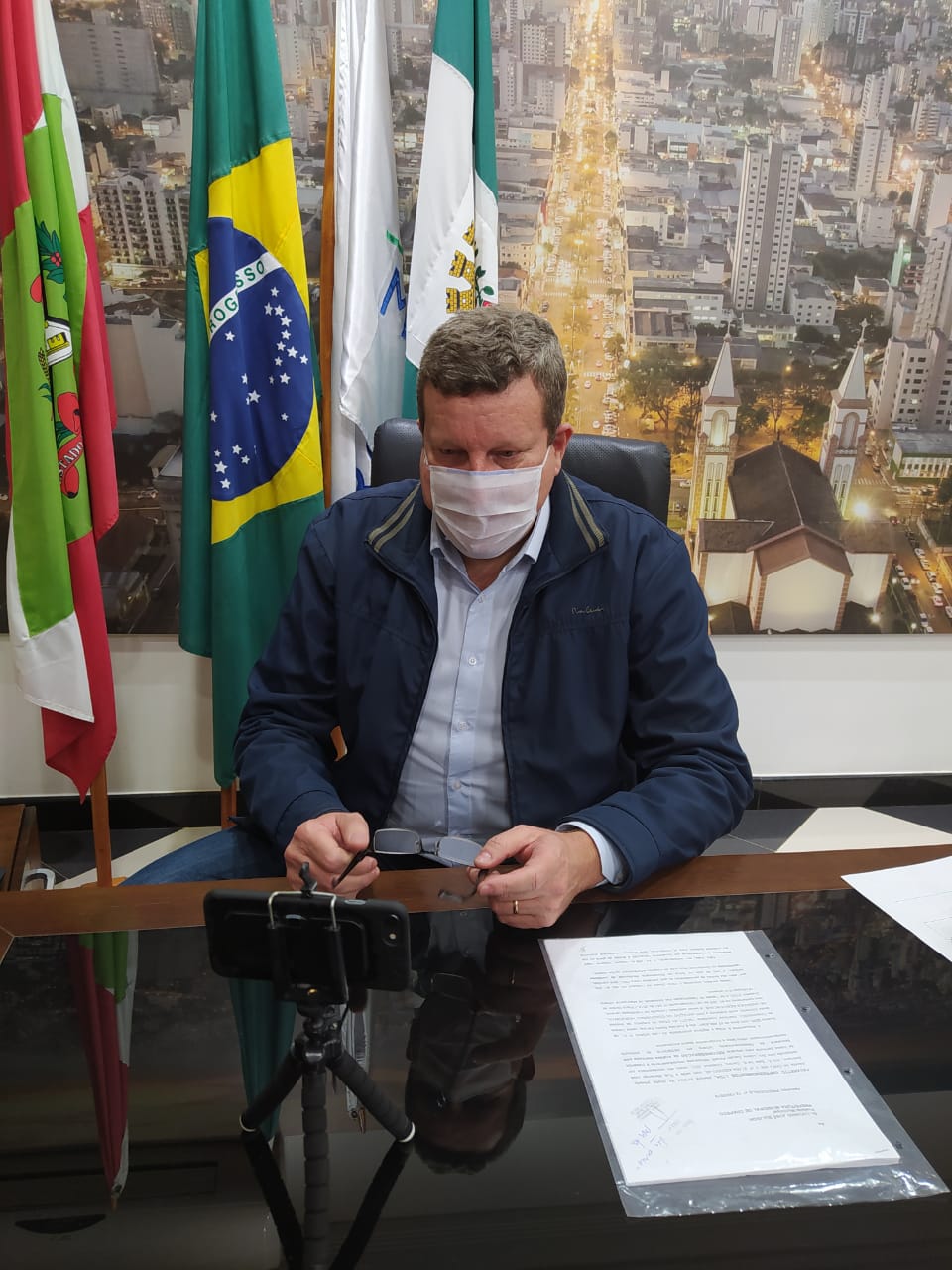 Chapecó, 25/05/2020, segunda-feira O prefeito de Chapecó, Luciano Buligon realizou reunião por videoconferência com representantes da ACIC Nelson Akimoto, CDL Clóvis Spohr, Sicom Ricardo Urbancic e CEC Cidnei Barozzi, nesta segunda-feira (25), no final da tarde.