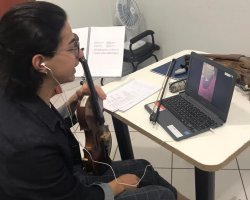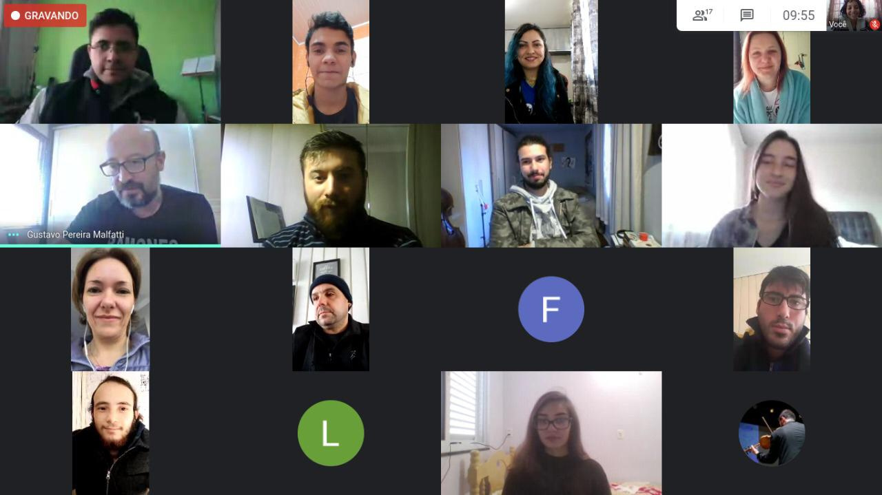 Chapecó, 02/06/2020, terça-feira O isolamento e a pandemia da Covid-19 exigiu das pessoas muita readaptação para enfrentar esse momento. E isso não foi diferente com os alunos do Programa Arte Cidadã e da Orquestra Sinfônica de Chapecó. Os professores e alunos, com o objetivo de manter o vínculo e não deixar a música e o teatro sairem do dia a dia deles, estão organizando atividades à distância. São vídeos e conteúdos pelo whats, reuniões e encontros através das ferramentas Zoom e Google meet, usadas como interação para manter esse contato. Também estão realizado lives com instrumentistas renomados do Brasil e exterior.