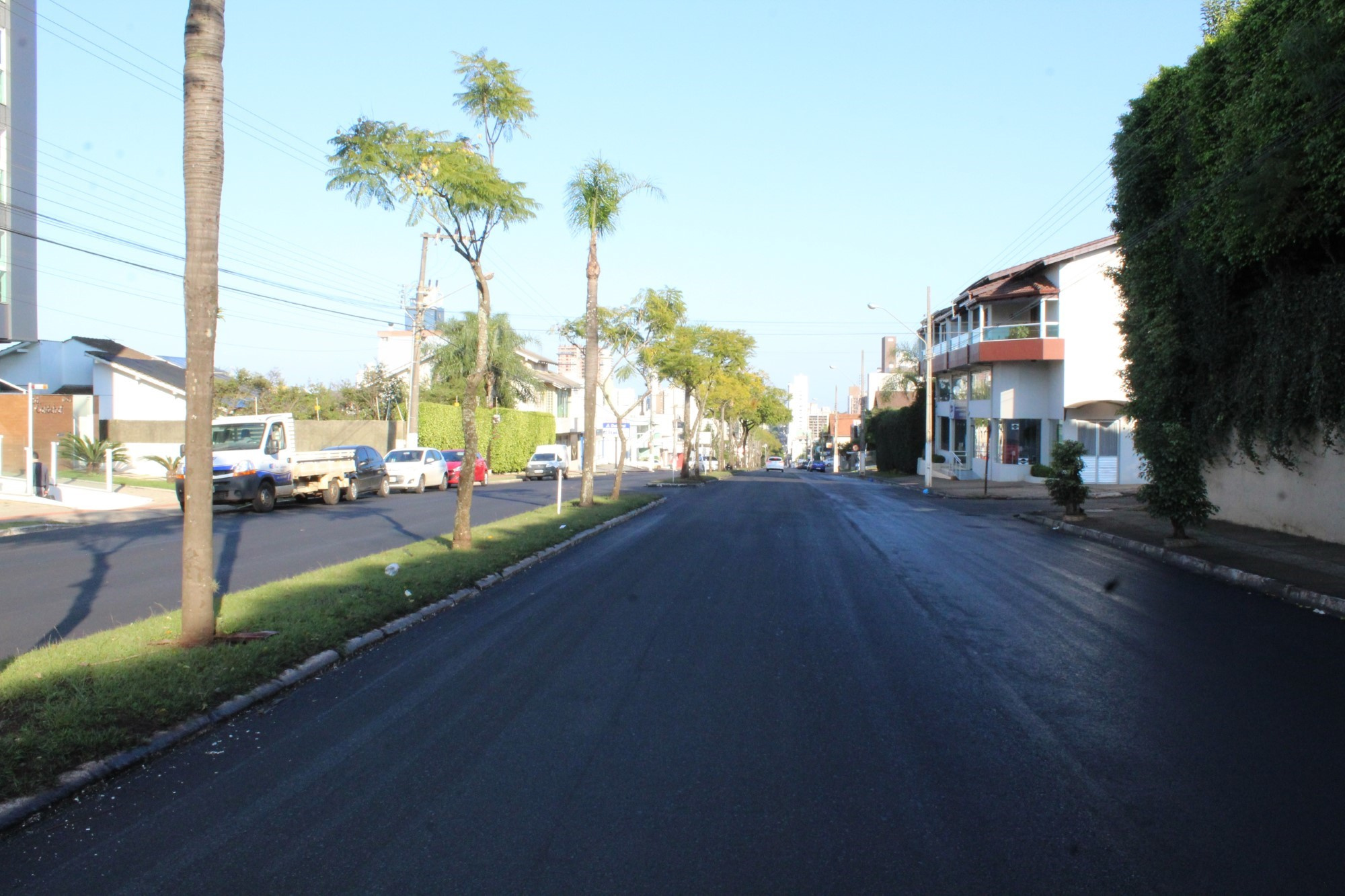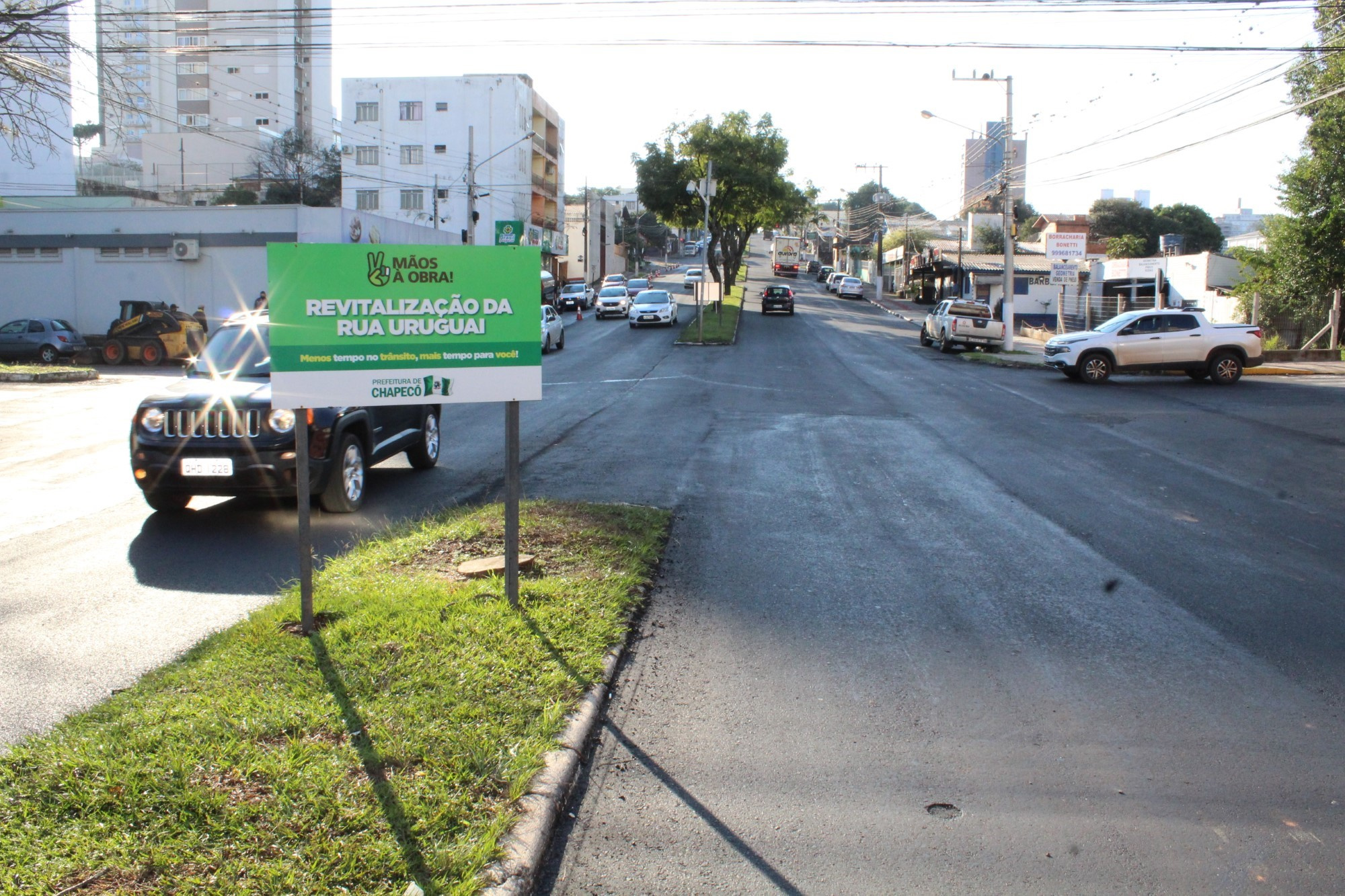 A obra de revitalização da Rua Uruguai, via de acesso a Chapecó para quem chega do Alto Uruguai Catarinense, entrou na fase final e encontra-se 80% concluída. Já foram vencidas as etapas de drenagem pluvial, remendos profundos, fresagem, recomposição do asfalto e pavimentação. Faltam apenas sinalização viária e acessibilidade, que envolve rampas de calçadas e transposição de canteiros.
