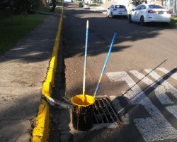 * Rua Beija Flor, Loteamento Califórnia: Limpeza de boca de lobo, Colocação de tubulação para melhorias e prevenção a alagamentos.
