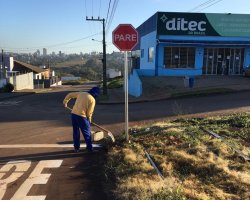 * Roçada e corte de grama em vias públicas nas ruas Dois Irmãos e Cunha Porã.