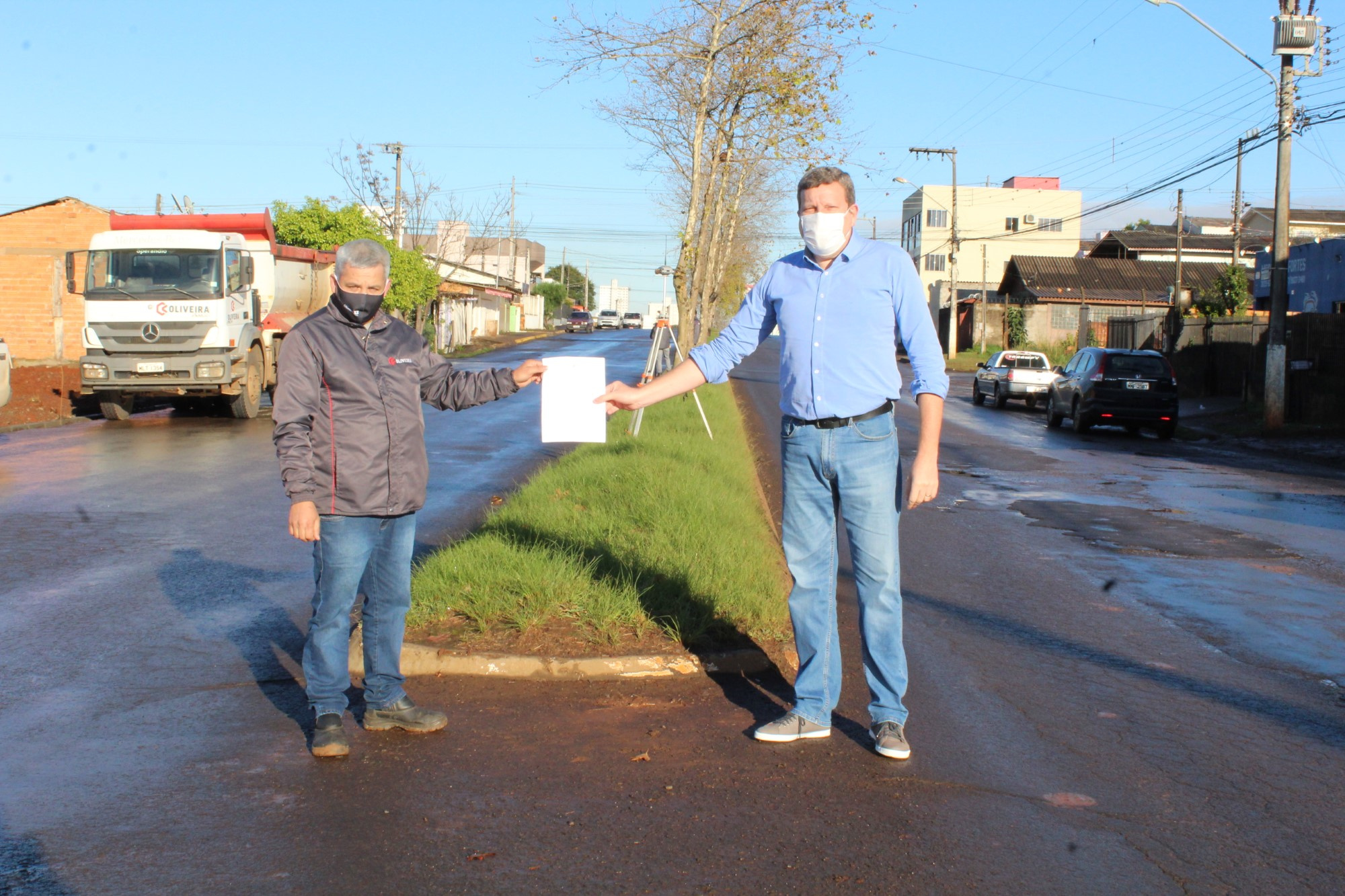 A Rua Marechal de Deodoro, importante corredor que liga diretamente as regiões Leste e Oeste de Chapecó, terá um trecho totalmente recuperado, entre as ruas Condá, no Centro, e a Dom Carlos Eduardo Saboia Bandeira de Melo, no bairro São Pedro. A Construtora Oliveira, empresa vencedora do processo licitatório, começa a organizar o canteiro de obras nesta quinta-feira (09-07). A ordem de serviço foi entregue nesta manhã pelo Prefeito, Luciano Buligon ao encarregado da empresa.