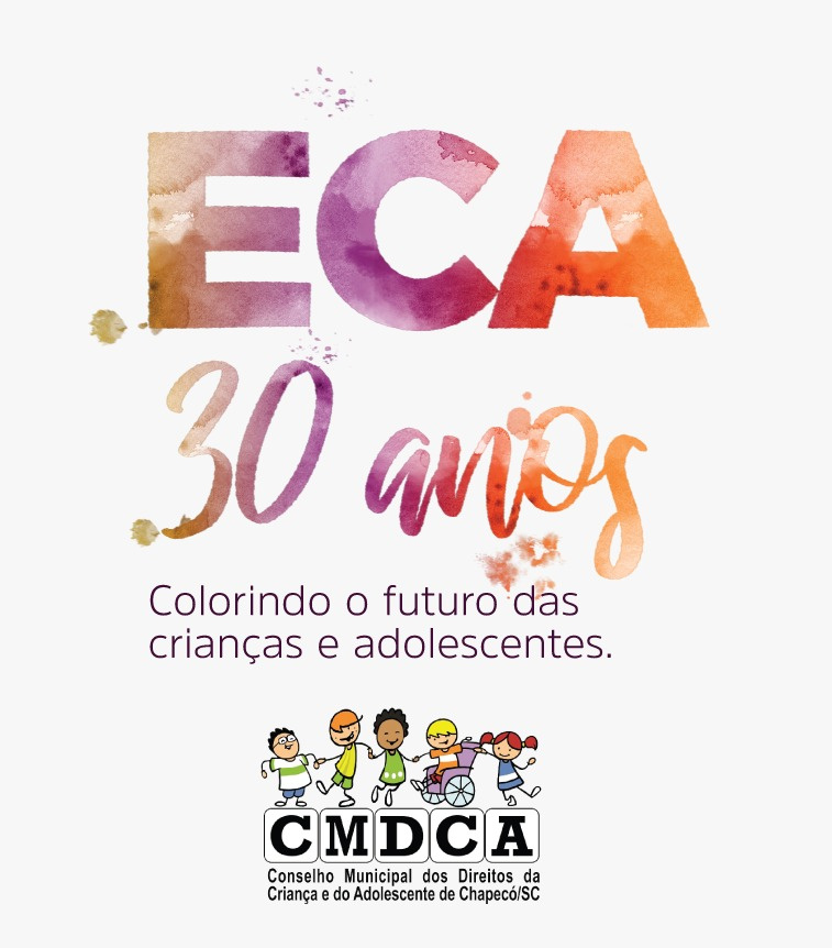 Chapecó, 14/07/2020, terça-feira No dia 13 de julho, é comemorado a criação do Estatuto da Criança e do Adolescente ECA, pela Lei 8.069/ de 13 de julho de 1990. Para marcar a data, o Conselho Municipal dos Direitos da Criança e Adolescente de Chapecó comemora os 30 anos, com a Campanha 30 Colorindo o futuro das crianças e adolescentes.
