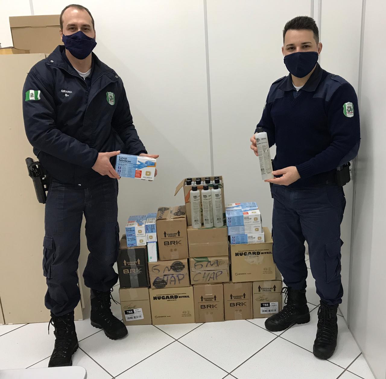 Ao todo foram recebidos 122 frascos de álcool em gel 70% e 31 caixas de luvas descartáveis, que serão disponibilizados para uso do efetivo da Guarda Municipal. A guarnição de Chapecó foi uma das 200 selecionadas no Brasil a receberem os materiais após a assinatura do termo de doação entre a Prefeitura e a Senasp.