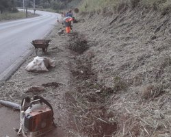 * Finalização dos serviços na linha Faxinal dos Rosas: limpeza de valas, barros, limpeza de tubulações e alinhamento de águas para tubulações;