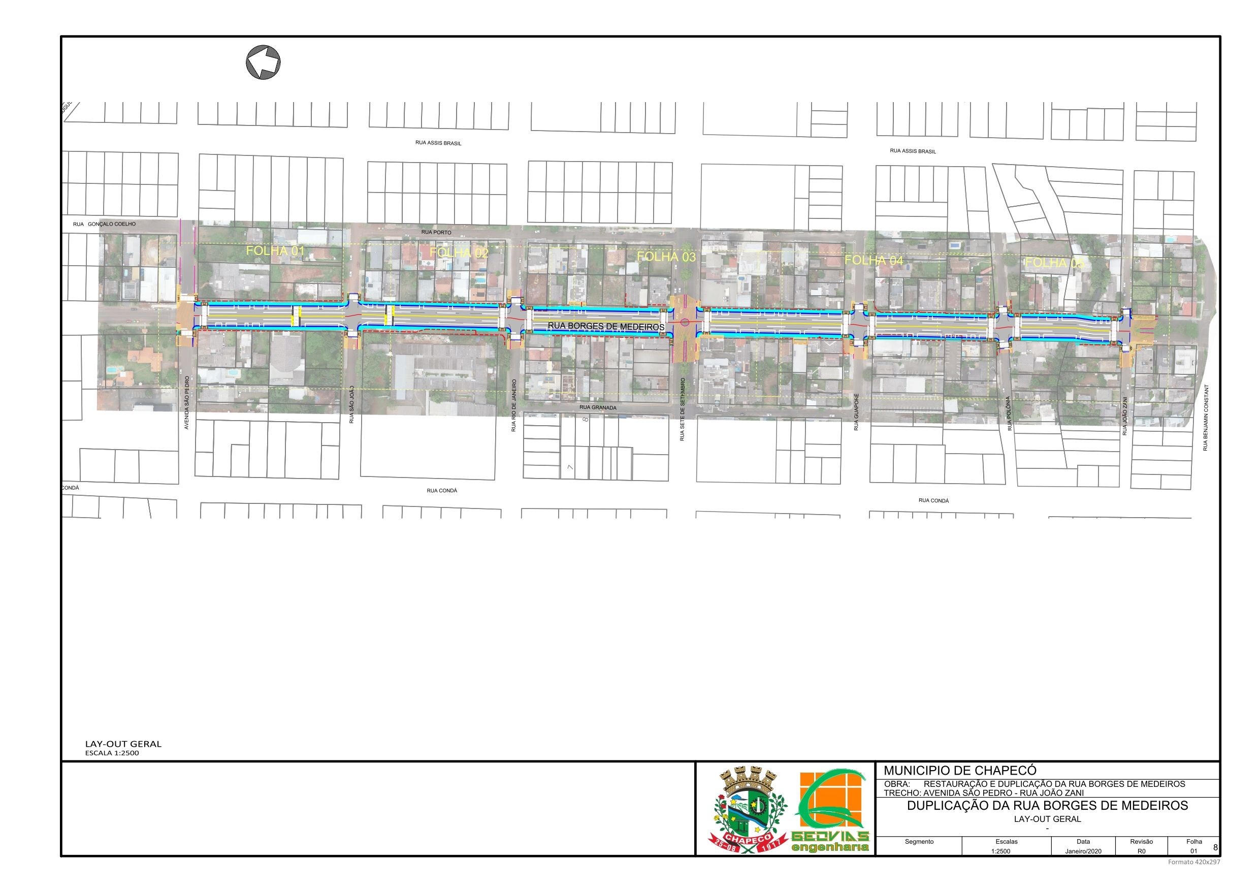 Chapecó, 21/07/2020 - terça-feira A Administração Municipal entregou nesta terça-feira a ordem de serviço para o início dos trabalhos de revitalização e duplicação de via da Rua Borges de Medeiros. Ao todo serão 781 metros recuperados, compreendendo o trecho entre a Avenida São Pedro e a Rua João Zani.