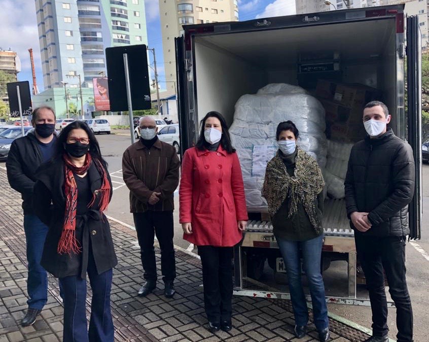 Chapecó, 31/07/2020, sexta-feira A BRF realizou a doação de 122,3 mil equipamentos de proteção individuais (EPIs) máscaras PFF2, máscaras, protetores faciais, máscaras tricoline, calças e toucas plásticas - à Secretaria de Saúde de Chapecó.