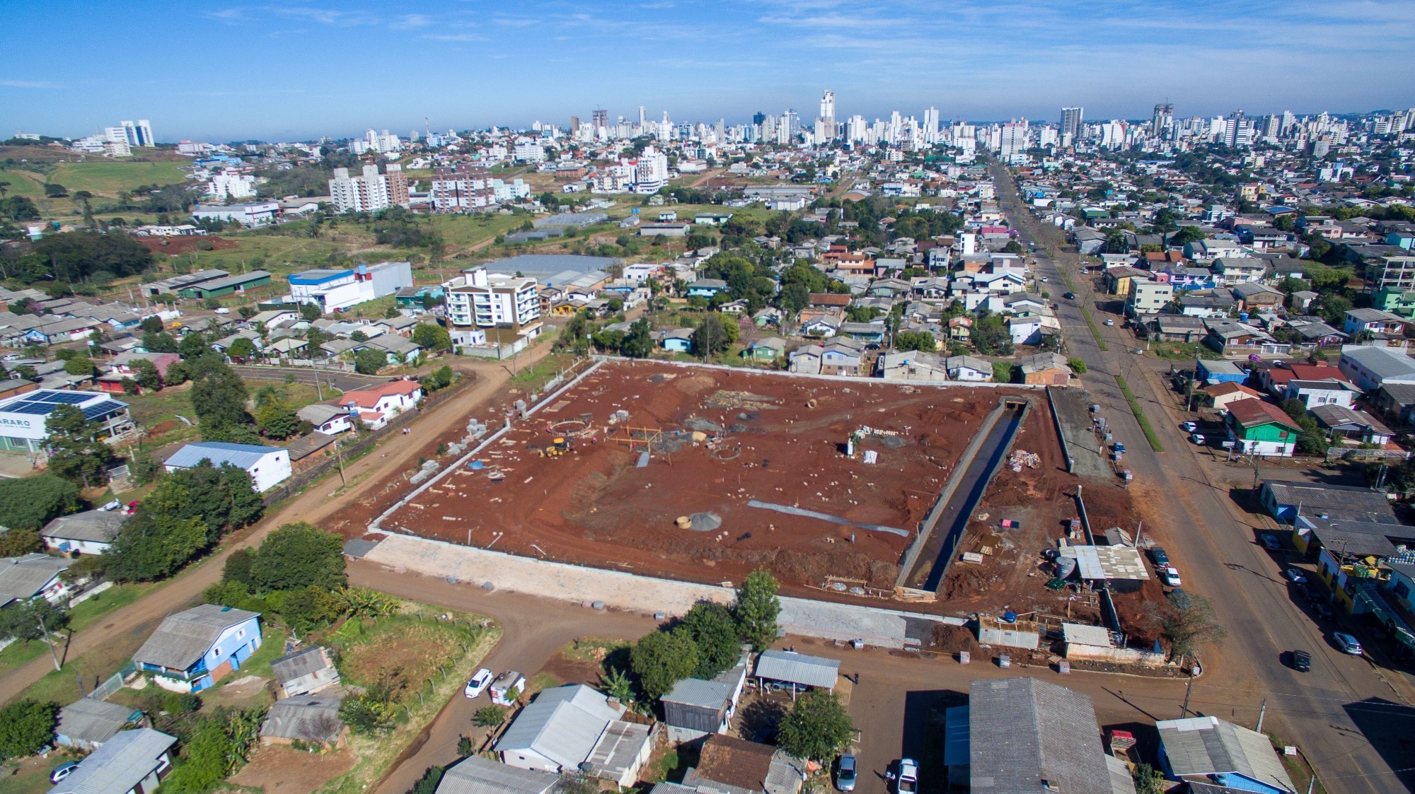 O cenário no terreno da antiga garagem da Prefeitura, na Rua Marechal Deodoro da Fonseca, no bairro São Pedro, já está bem diferente. A obra da Praça da Família é uma das realizações do Programa Mãos à Obra, da Administração Municipal de Chapecó e encontra-se 50% concluída. A Praça foi pensada para ser um espaço humanizado, de lazer e serviços, e já está contribuindo para resolver questões ambientais. A área de 12.308.077 m2 foi aterrada e as equipes concluíram os Muros de Gabião, etapa de drenagem que formou um canal aberto, com o objetivo de evitar alagamentos no bairro.