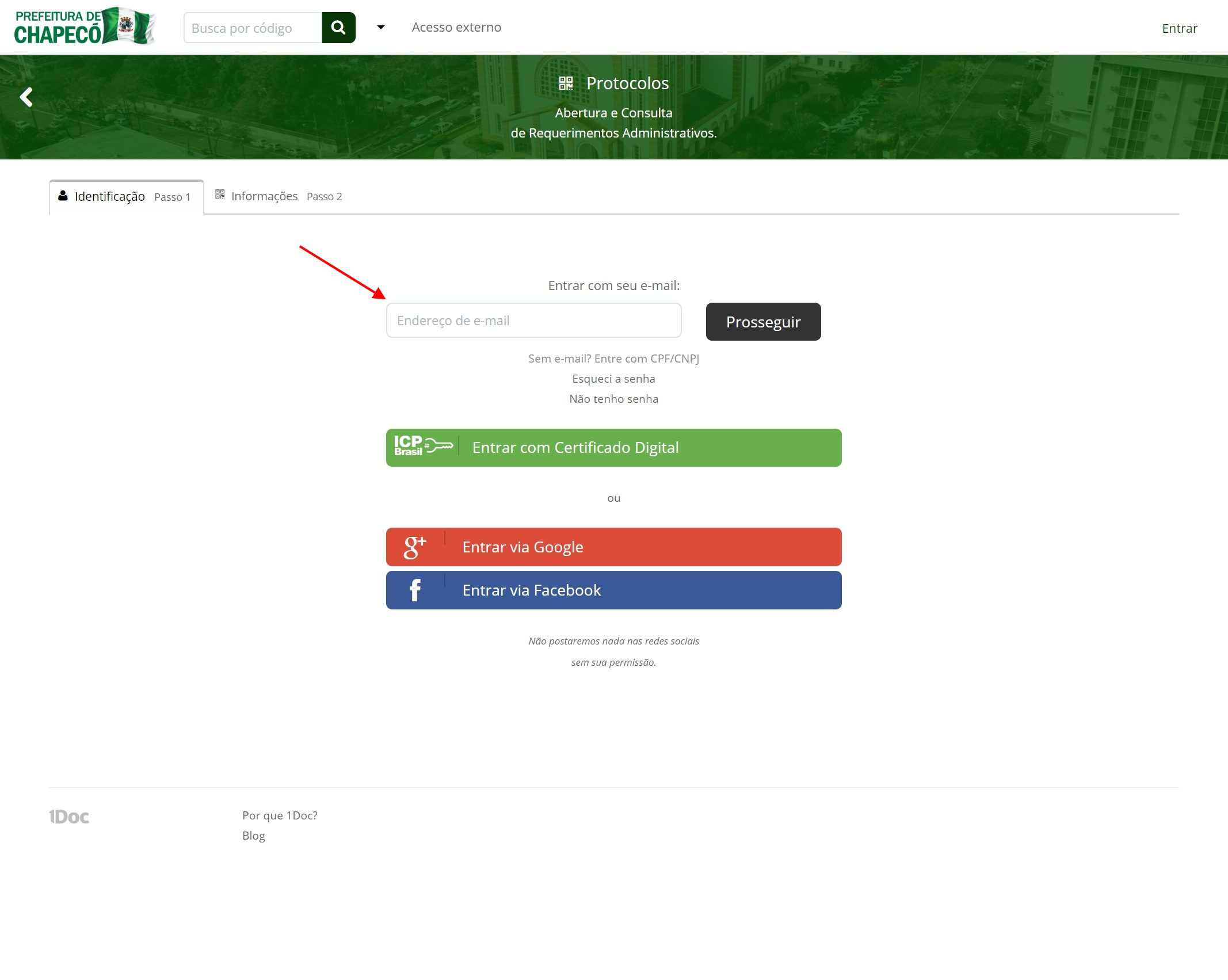 Link para acesso: https://chapeco.1doc.com.br/atendimento