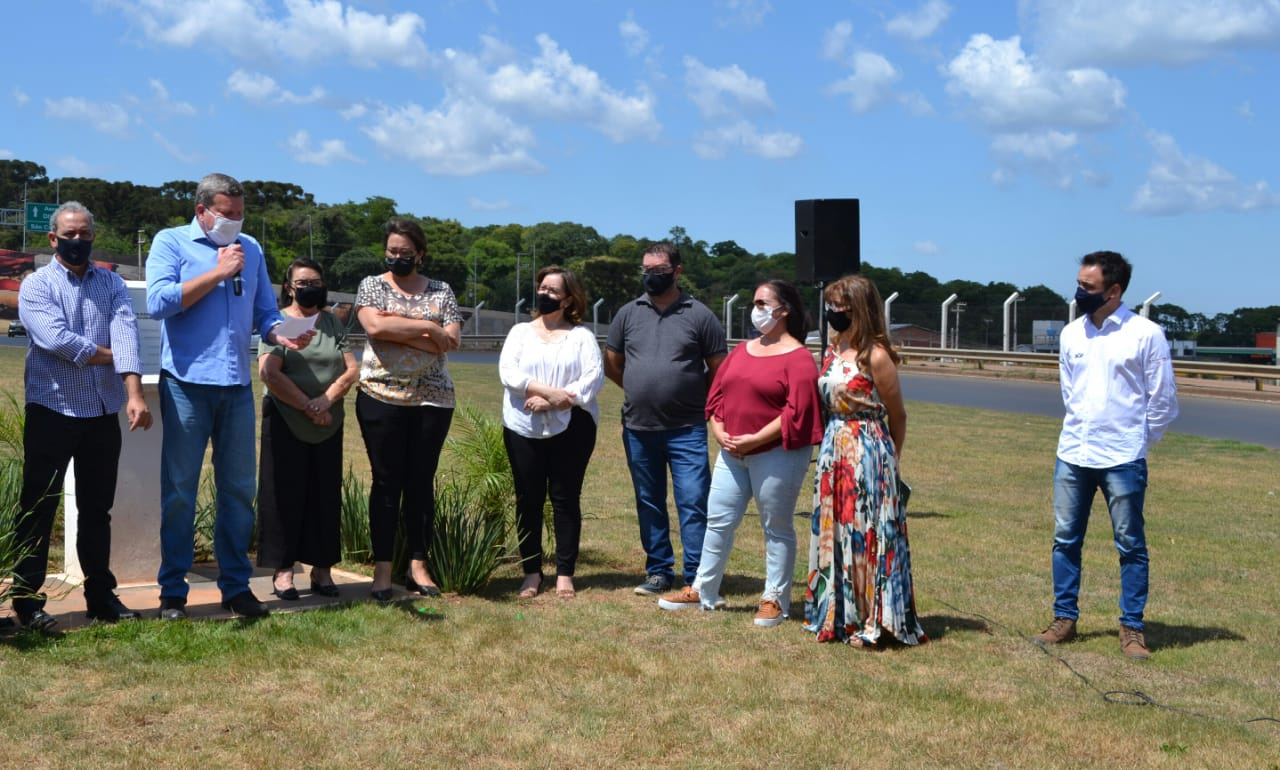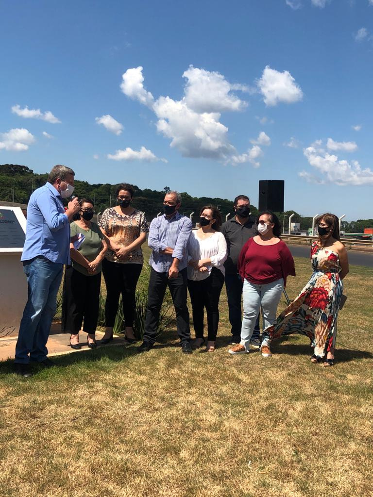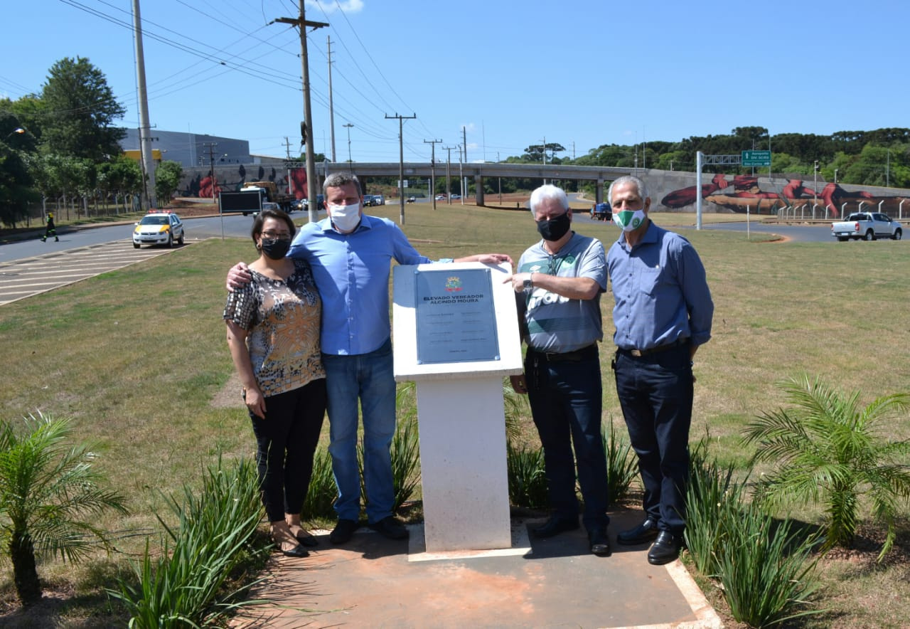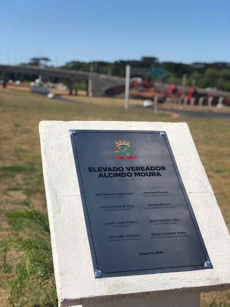 Em um ato breve, singelo e sem formalidades na manhã deste sábado (21-11), o Prefeito de Chapecó Luciano Buligon reuniu representantes da família do Vereador Alcindo Moura (in memoriam) para homenageá-los pela honraria. O momento também foi para agradecer os parceiros e apresentar os investimentos realizados no Elevado, que caracteriza-se como uma das maiores e mais importantes obras de mobilidade urbana de Chapecó e região.