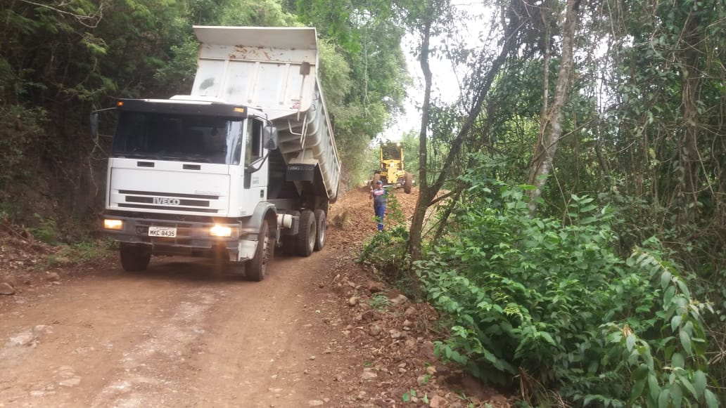 * Finalização dos serviços de manutenção das estradas na Linha Faxinal dos Rosas;