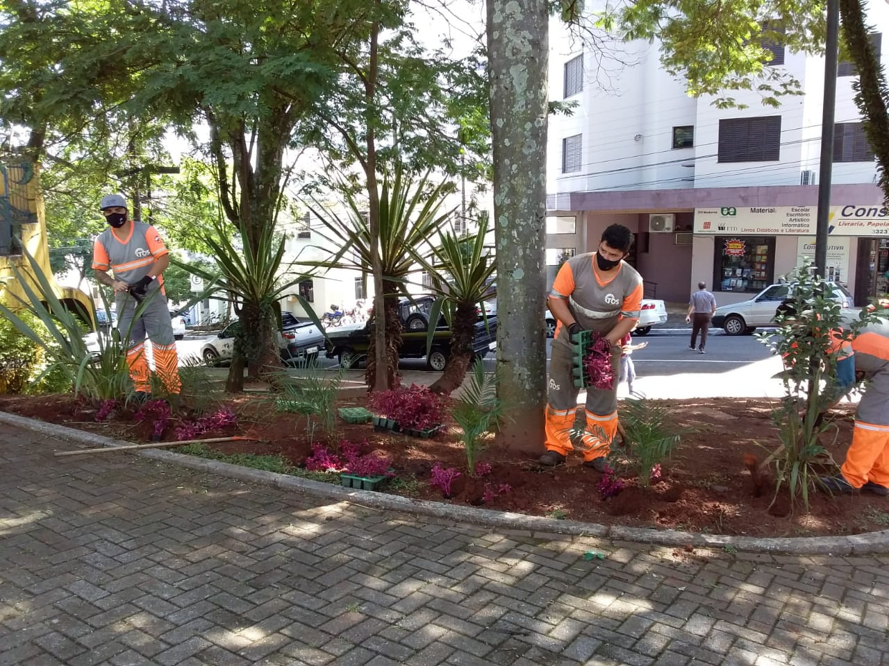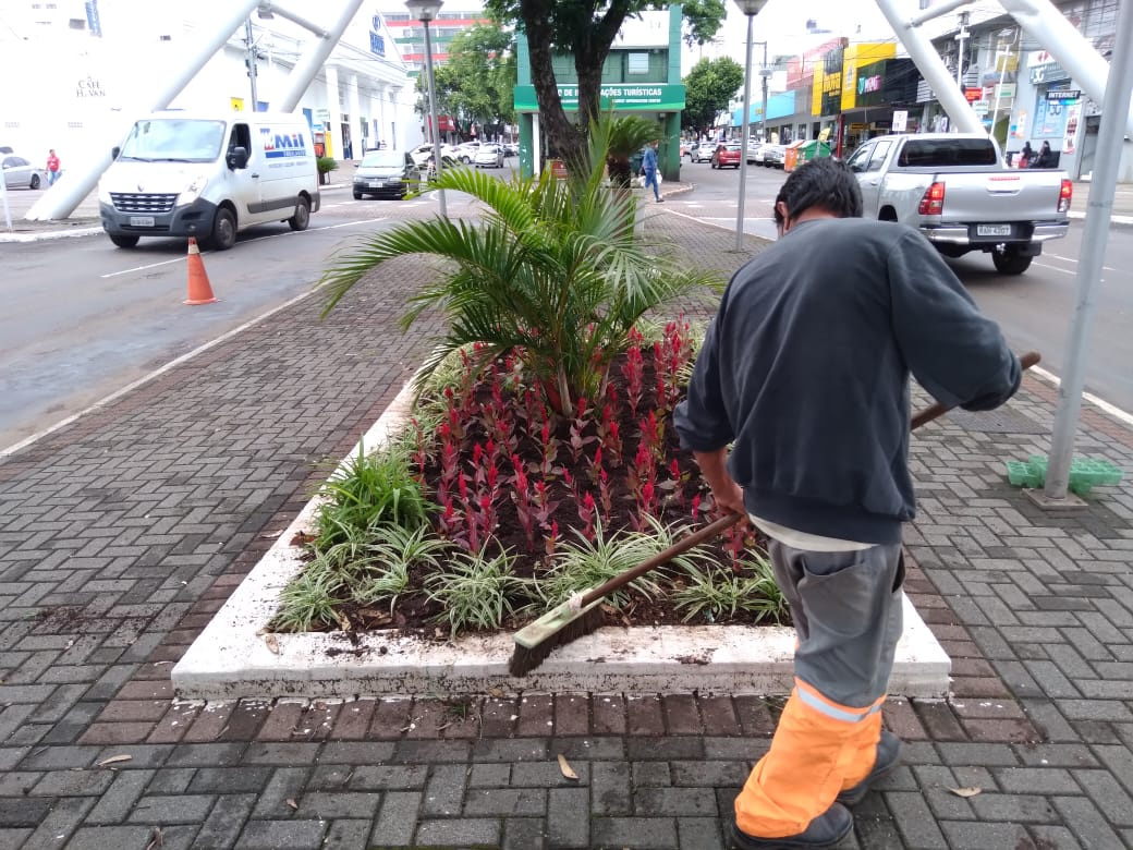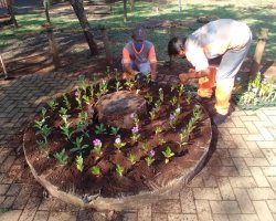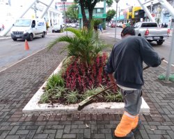 - Ajardinamento, plantio de grama e flores nos canteiros e rótulas localizadas nas Avenidas Fernando Machado, Nereu Ramos, Ruas Condá, Borges de Medeiros, Assis Brasil, Prédio do Tributos da Prefeitura e Parque Medellín;