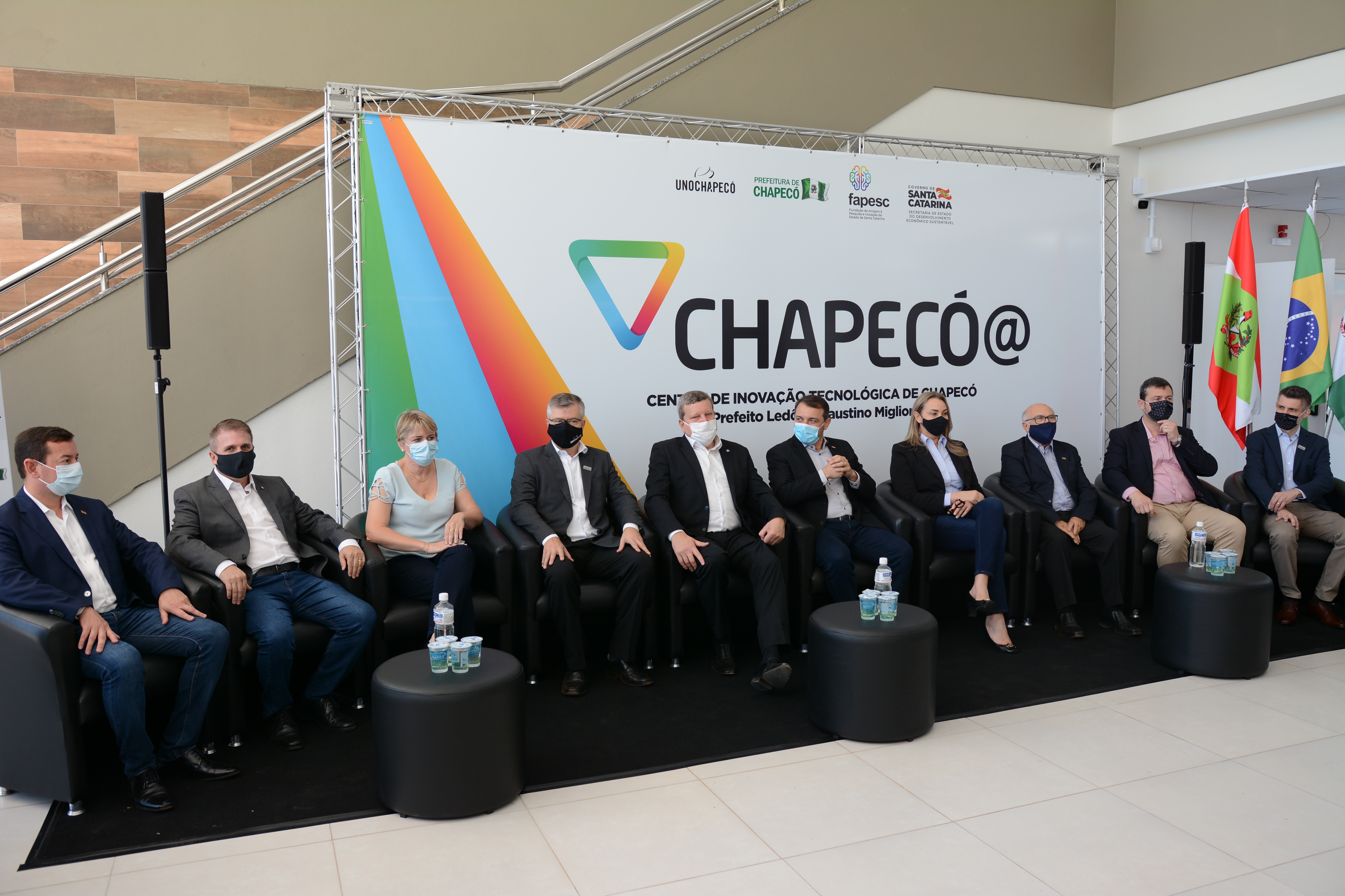 Chapecó, 11/12/2020 - sexta-feira Para promover o empreendedorismo, impulsionar a inovação e apoiar o desenvolvimento de novas vocações regionais, conectando poder público, universidades e iniciativa privada, é que foi entregue nesta sexta-feira (11), pelo Governador do Estado, Carlos Moisés da Silva, o Prefeito de Chapecó, Luciano Buligon, e demais autoridades, o Centro de Inovação Tecnológica de Chapecó - Prefeito Ledônio Faustino Migliorini.