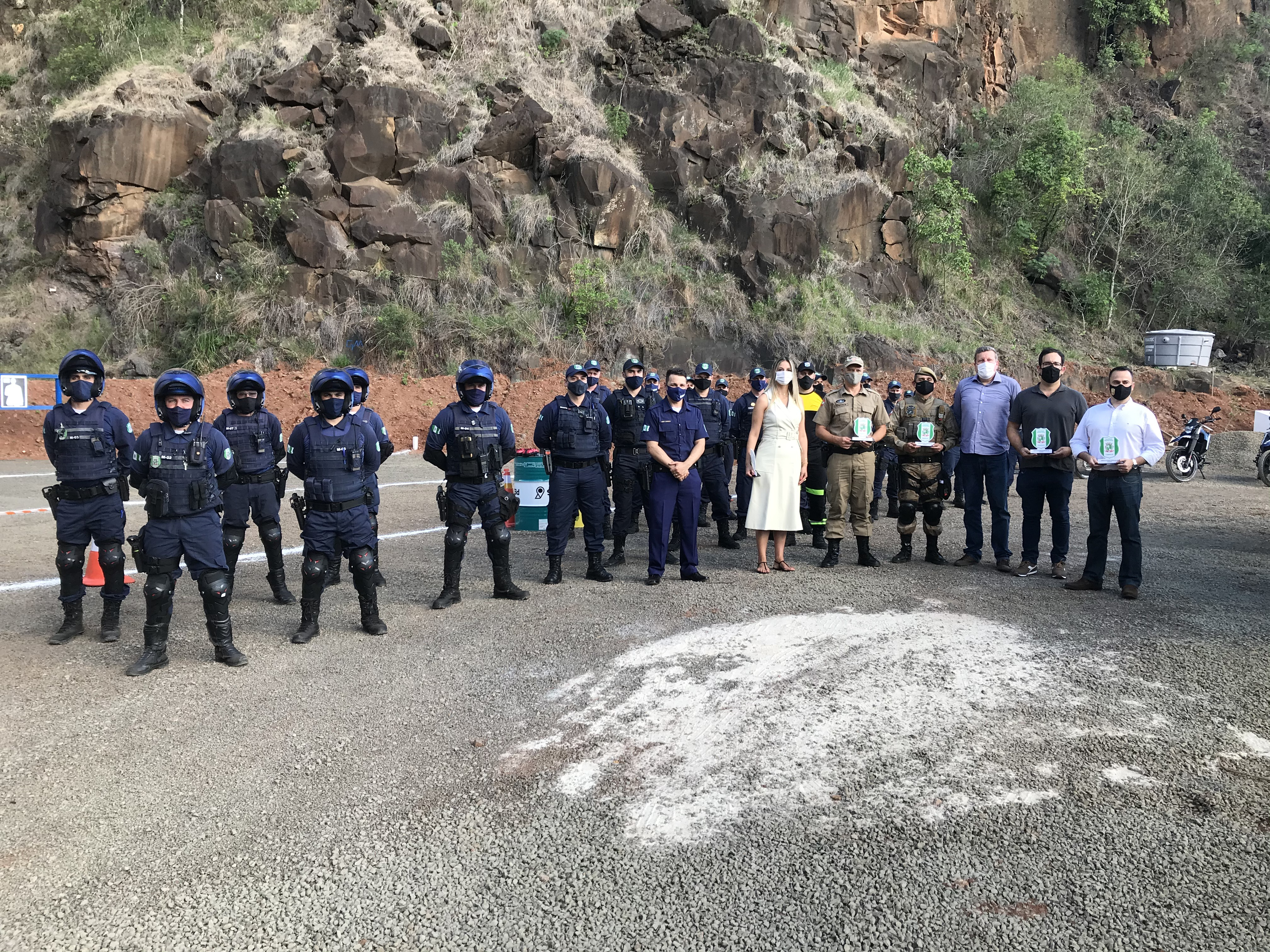 Chapecó, 21/12/2020 - segunda-feira A Administração Municipal, por meio da Secretaria de Defesa do Cidadão e Mobilidade, realizou na última sexta-feira (18) a inauguração do Estande de Tiro da Guarda Municipal de Chapecó. O ato contou com a presença dos guardas, autoridades, secretários e representantes dos Órgãos de Segurança Pública.