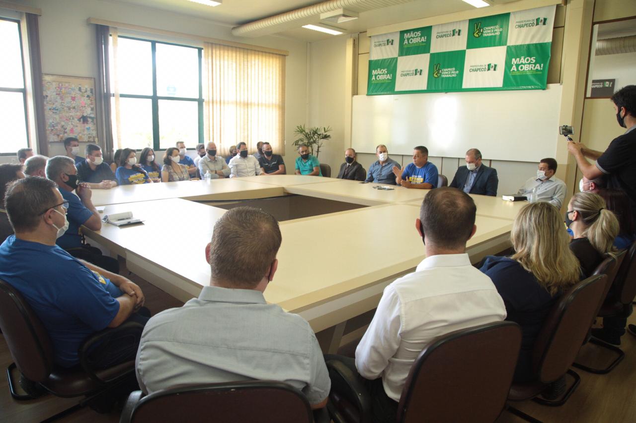 Às 7h30 desta segunda-feira foi realizada a primeira reunião oficial da gestão 2021/2024 da administração municipal de Chapecó, com os novos secretários, diretores, prefeito e vice-prefeito