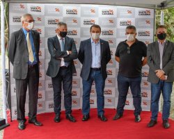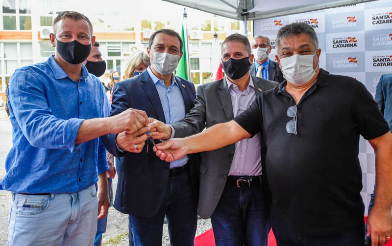 O prefeito de Chapecó participou na manhã desta quarta-feira de uma solenidade de entrega de tratores da secretaria de Estado da Agricultura, para municípios do Estado, com a participação do governador Carlos Moisés da Silva.