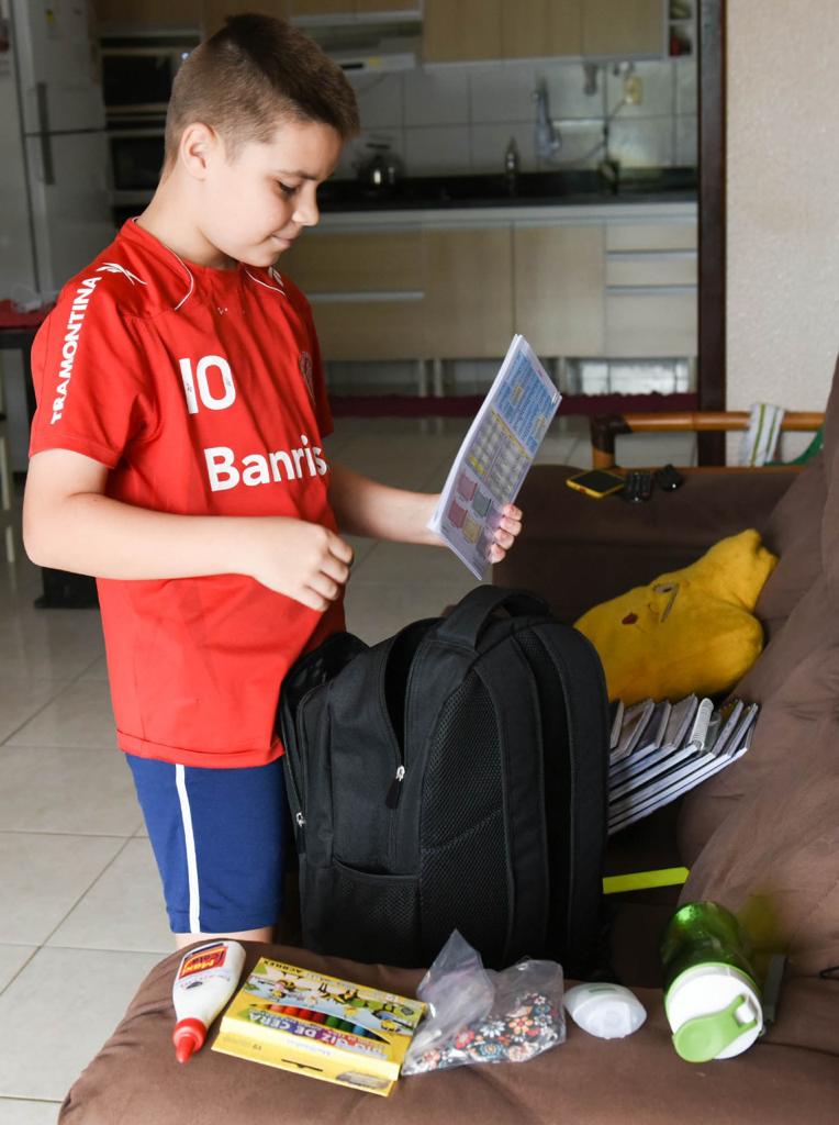 Para o estudante Luiz Strapazzon, de 11 anos, a expectativa do retorno presencial ou híbrido era imensa. Ele já estava com tudo pronto há dias, mas compreende o momento, que a saudade dos amigos e dos professores é imensa e ficou triste em não revê-los ainda,
