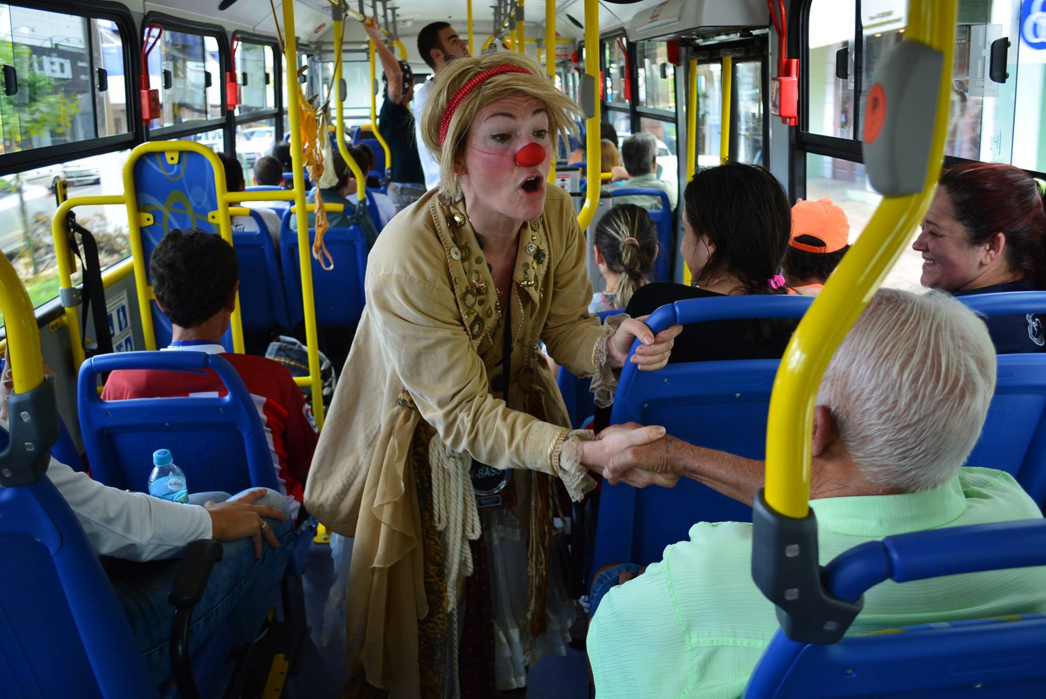 Atividades teatrais em um espaço alternativo também marcam as ações voltadas às artes cênicas. Dois palhaços e um só objetivo: potencializar encontros poéticos num ambiente de uso comum, esta é a ideia central do projeto Na catraca. A peça, que se desenvolve dentro de um transporte coletivo, gera improvisação, comicidade, interação dentro de todas as especificidades do ambiente. A peça acontece dentro de um ônibus enquanto este cumpre seu percurso regular e transforma-se em um espaço de arte. As intervenções acontecem na segunda-feira, dia 30/10, com saída do Terminal Rodoviário, às 9h40, na Linha Cristo rei e às 10h20 na Linha Vila Real e na terça-feira, 31/10 às 10h45 na Linha Vila Esperança e às 15h30 na Marechal Bormann. O espetáculo começa no próprio terminal, cerca de 10 minutos antes da saída dos ônibus.
