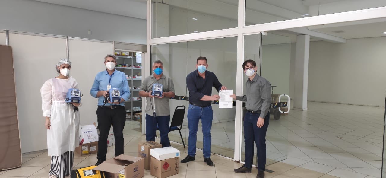 A Universidade Federal da Fronteira Sul emprestou ontem equipamentos para a ampliação de leitos de UTI e enfermaria no Centro de Cultura e Eventos de Chapecó. De acordo com o secretário-adjunto da Saúde, Jader Danielli, o município recebeu três bombas de infusão, dois monitores e um desfibrilador.