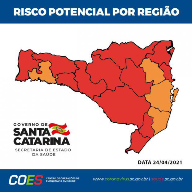 A região de Chapecó saiu do nível gravíssimo na matriz de risco para Covid divulgada pelo Governo do Estado neste sábado. Com isso a cor deixa de ser vermelha, que é gravíssimo, para grave. Com isso algumas práticas esportivas, como nos campos de futebol, estão liberadas.