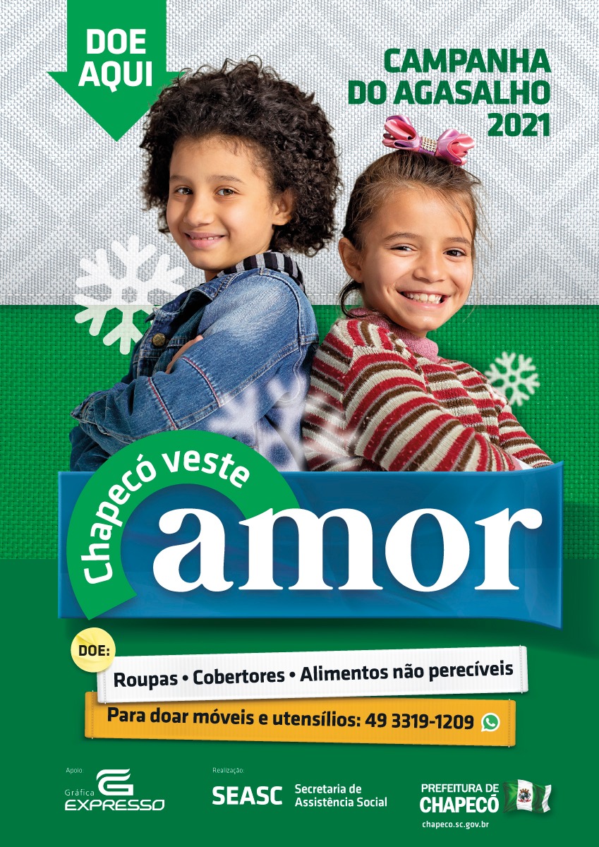 Será lançada nesta sexta-feira, pela Administração Municipal, a campanha Chapecó Veste Amor. Haverá um ato com acesso restrito a partir das 8h30, no Teatro Municipal do Centro de Cultura e Eventos.