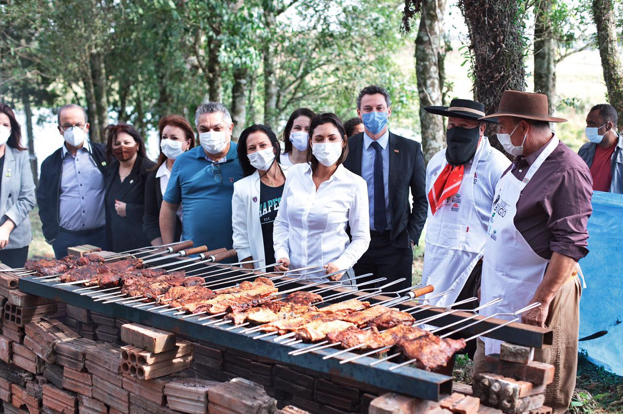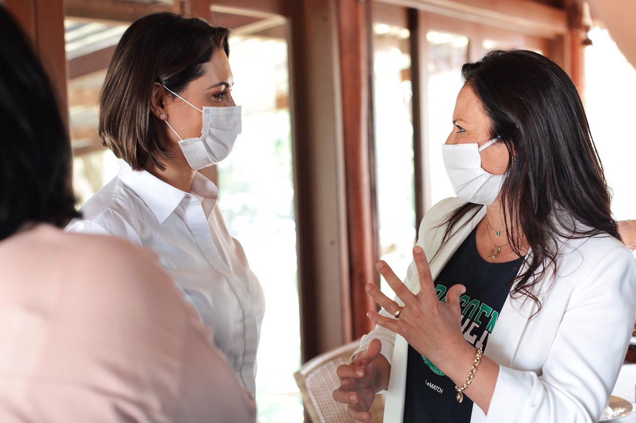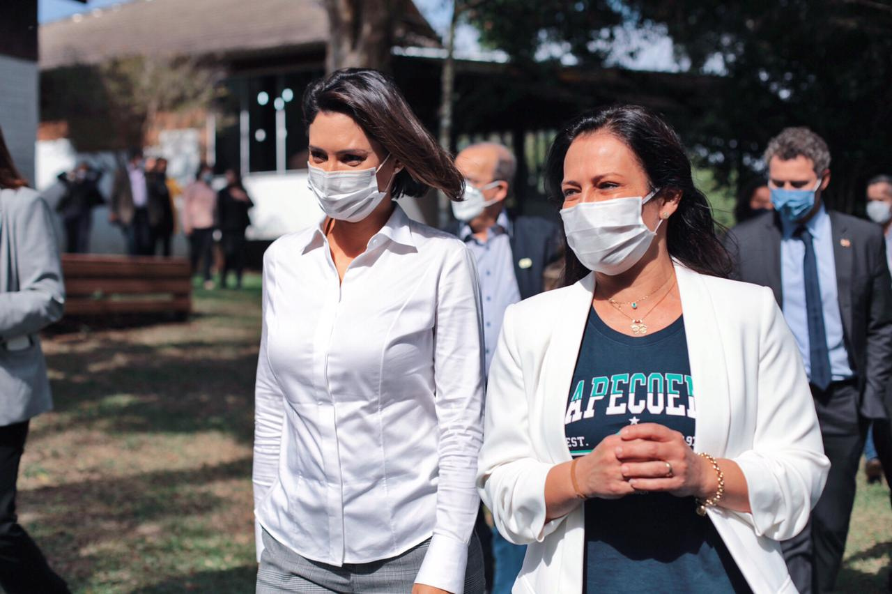 A Primeira Dama do Brasil, Michelle Bolsonaro, almoçou nesta sexta-feira com o prefeito de Chapecó, João Rodrigues, com a Primeira Dama do Município, Fabiana Matte Rodrigues, e também com a Primeira Dama do Estado, Késia Martins da Silva. Também estava presente a Ministra da Mulher, da Família e dos Direitos Humanos, Damares Alves.