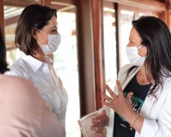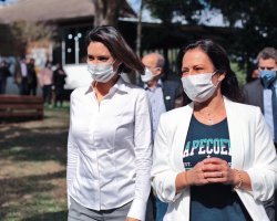 A Primeira Dama do Brasil e a Ministra pousaram no Aeroporto Serafim Enoss Bertaso no final da manhã. Depois do almoço elas seguem para Saudades, onde vão visitar a creche Aquarela, local onde três crianças e duas professoras foram mortas no início do mês.
