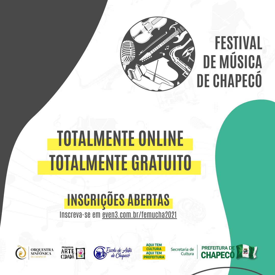 A Prefeitura de Chapecó, através Secretaria de Cultura, Programa Arte Cidadã, Escola de Artes e Orquestra Sinfônica, realizará entre junho e agosto o Festival de Música de Chapecó (Femucha). O evento, que ocorrerá de forma online, promoverá oficinas, palestras, classes de instrumentos e recitais.