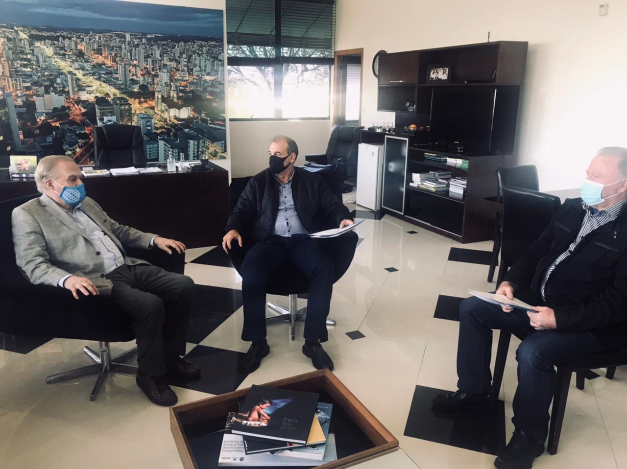 O vice-prefeito de Chapecó, Itamar Agnoletto, e o diretor de Desenvolvimento Econômico do município, Nadir Cervelin, receberam na manhã desta terça-feira representantes do Instituto Brasileiro de Saúde, Ensino, Pesquisa e Extensão para o Desenvolvimento Humano (IBSaúde), entre eles o ex-ministro da Saúde, Alceni Guerra. Ministro do presidente Fernando Colllor, ele foi criador da Lei do SUS.